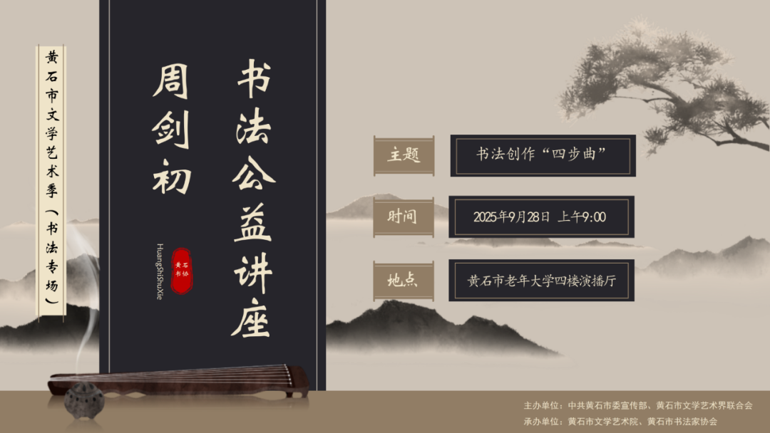 据了解,首场活动将于9月28日在市老年大学举办,特邀中国书法家协会理事、草书委员会委员,清华大学美术学院客座教授周剑初开展书法讲座。周剑初师从著名书法家沈鹏,为“沈门七子”成员,曾获第十届全国书法篆刻作品展优秀奖(最高奖)、全国首届册页书法大赛一等奖等重要奖项,并多次担任全国性书法篆刻展览评委,在中国美术馆成功举办两次个人书法展,在书法界具有广泛影响力。