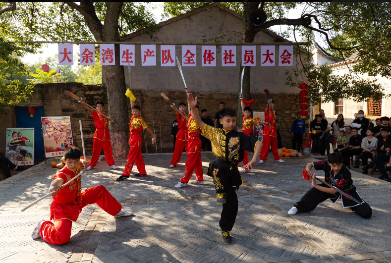 调研当日,乡村场院与街巷间,锣鼓喧天,喝彩不断。大余湾对民俗非遗的保护,绝非束之高阁,而是将其融入日常,实现了有效的“活化”传承。泥塑艺术家现场献艺,将指尖泥土化为栩栩佳作;皮影戏幕布后的光影变幻,木偶戏艺人的巧手操控,引得孩子们阵阵惊呼;惊险刺激的非遗斗鸡表演和刚柔并济的木兰武术展示,展现了力量与技巧之美;韵味十足的楚剧、妙趣横生的湖北大鼓、神奇的川剧变脸,以及富有节日喜庆氛围的采莲船等民俗表演,轮番上场,为参观者奉上了一场场传统文化的盛宴。
