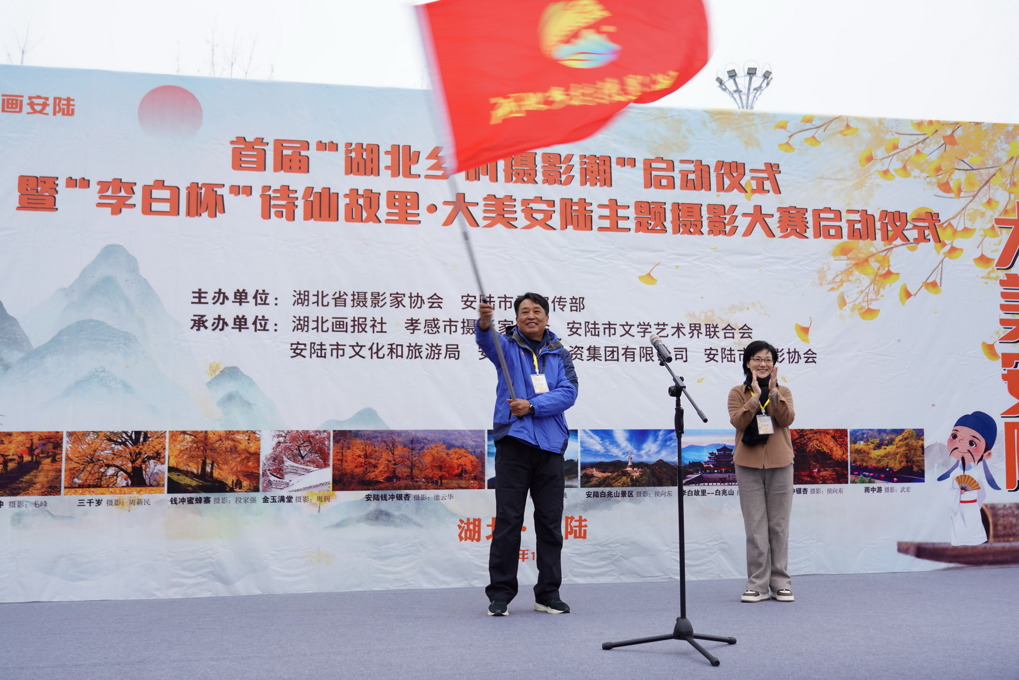 11月19日,首届“湖北乡村摄影潮”启动仪式在安陆举行。省文联主席杨俊出席活动为“湖北乡村摄影潮”授旗。杨子欣 摄