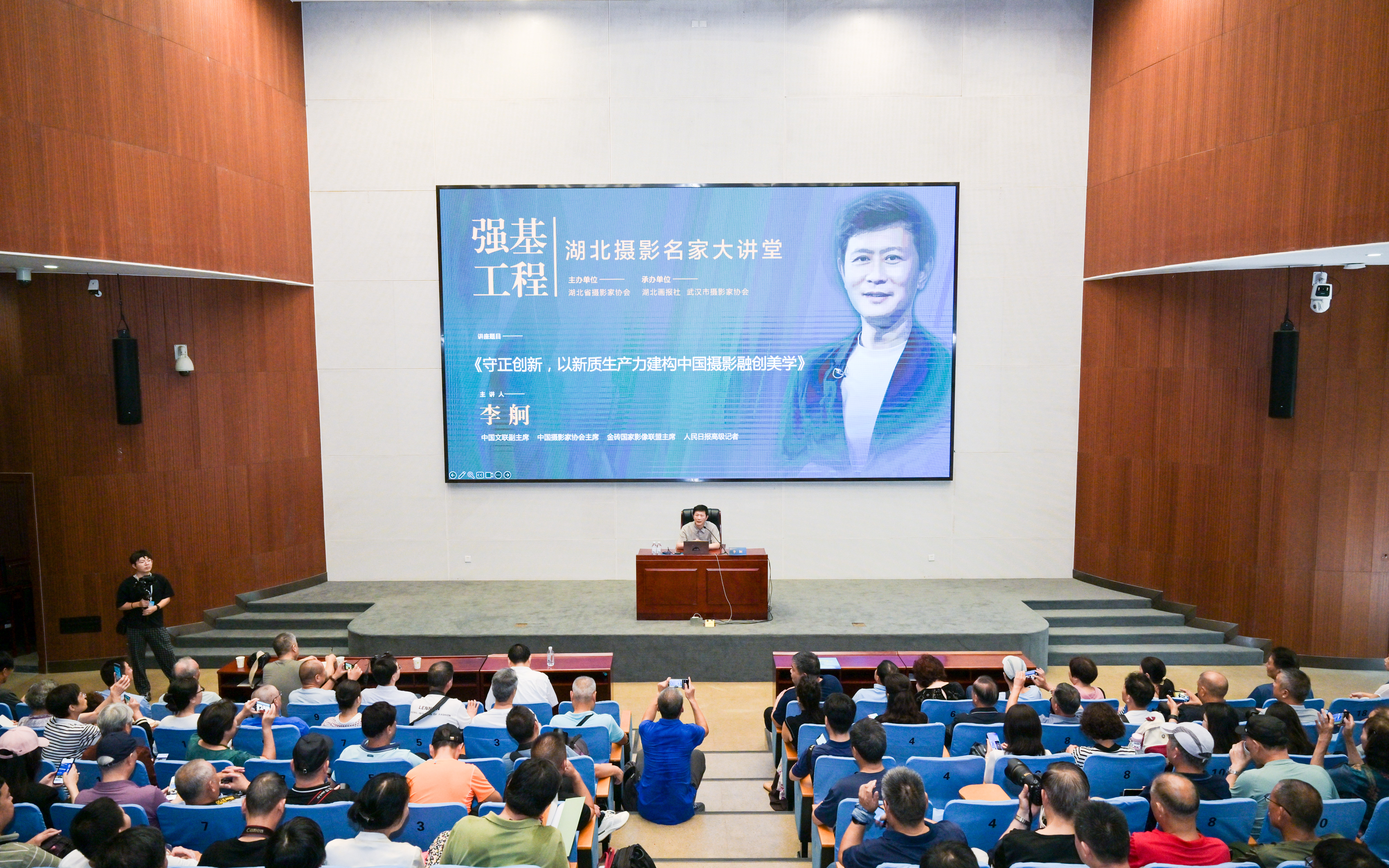 湖北摄影名家大讲堂是为贯彻落实“强基工程”有关工作部署,进一步弘扬中华优秀文化,推动我省摄影艺术事业发展,由湖北省摄影家协会主办的系列讲座活动,9月19日至20日,邀请中国文联副主席、中国摄影家协会主席、金砖国家影像联盟主席、《人民日报》社高级记者李舸主讲《守正创新,以新质生产力建构中国摄影融创美学》,中国摄影家协会副主席、河北省文联副主席、河北省摄影家协会主席杨越峦主讲《深沉思考——拥抱时代》,中国摄影家协会理事、广东省摄影家协会副主席、深圳市摄影家协会主席赵青主讲《用镜头记录时代,让影像凝聚力量》,中国摄影家协会理事、重庆市文联副主席、重庆市摄影家协会主席鞠芝勤主讲《镜头说事》。来汉授课共4个场次,惠及一线新闻摄影工作者、摄影家、摄影爱好者逾千人。