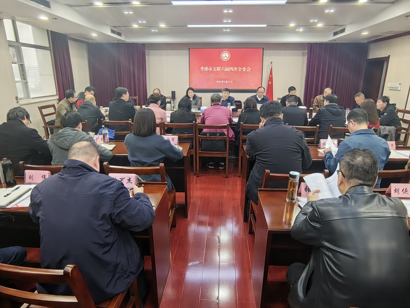 会议书面传达了湖北省文联十一届二次全委会精神和全市宣传部长会议精神,通报表彰了2023年度优秀文艺志愿者,通过了《孝感市文联第六届委员会关于增补、替换部分委员的决定》。市文联党组书记、主席王顺利代表第六届主席团作了题为《勇担新使命 展现新气象 为谱写中国式现代化孝感篇章凝聚文艺力量》的工作报告,总结了2023年工作,并对2024年工作进行了安排部署。