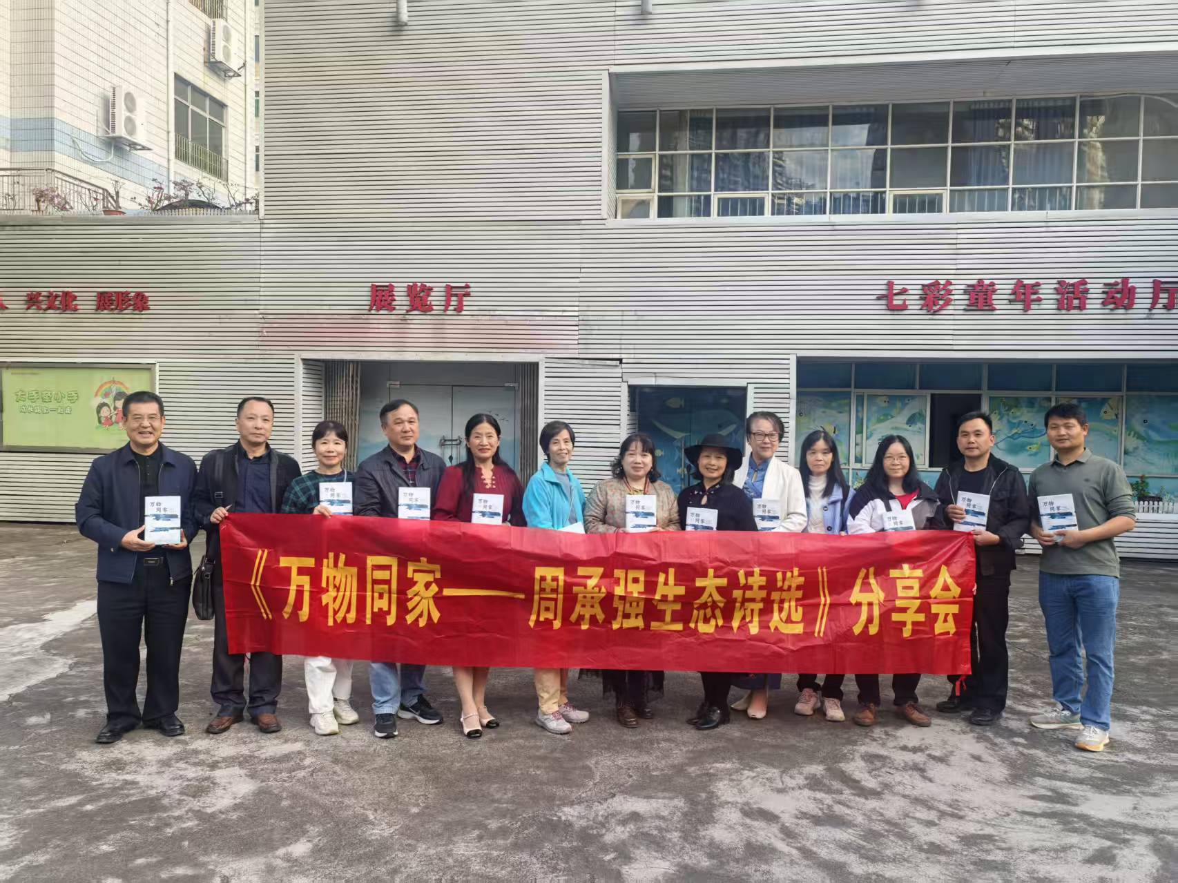 秋高气爽,风和日丽。11月22日,由广州市小小说学会、珠风小说创作研究会、黄石市黄石港区文联和区作协联合举办的生态诗人周承强的新诗集《万物同家一一周承强生态诗选》分享会在广州市花都区少年儿童图书馆举行,广东省小小说学会副会长兼广州市小小说学会会长余清平,副会长钱春华、刘凌,花都区作协副主席刘强,秘书长吕麒麟以及肖曙光、张小玲、文丽俊、孙艳、欧政芳、刘玉荣、杨晓敏、邹秀云、周承强等10多位作家参加。与会作家认为周承强的生态诗歌创作探索独具特色,是美丽中国建设的真实写照,具有较高的生态价值。