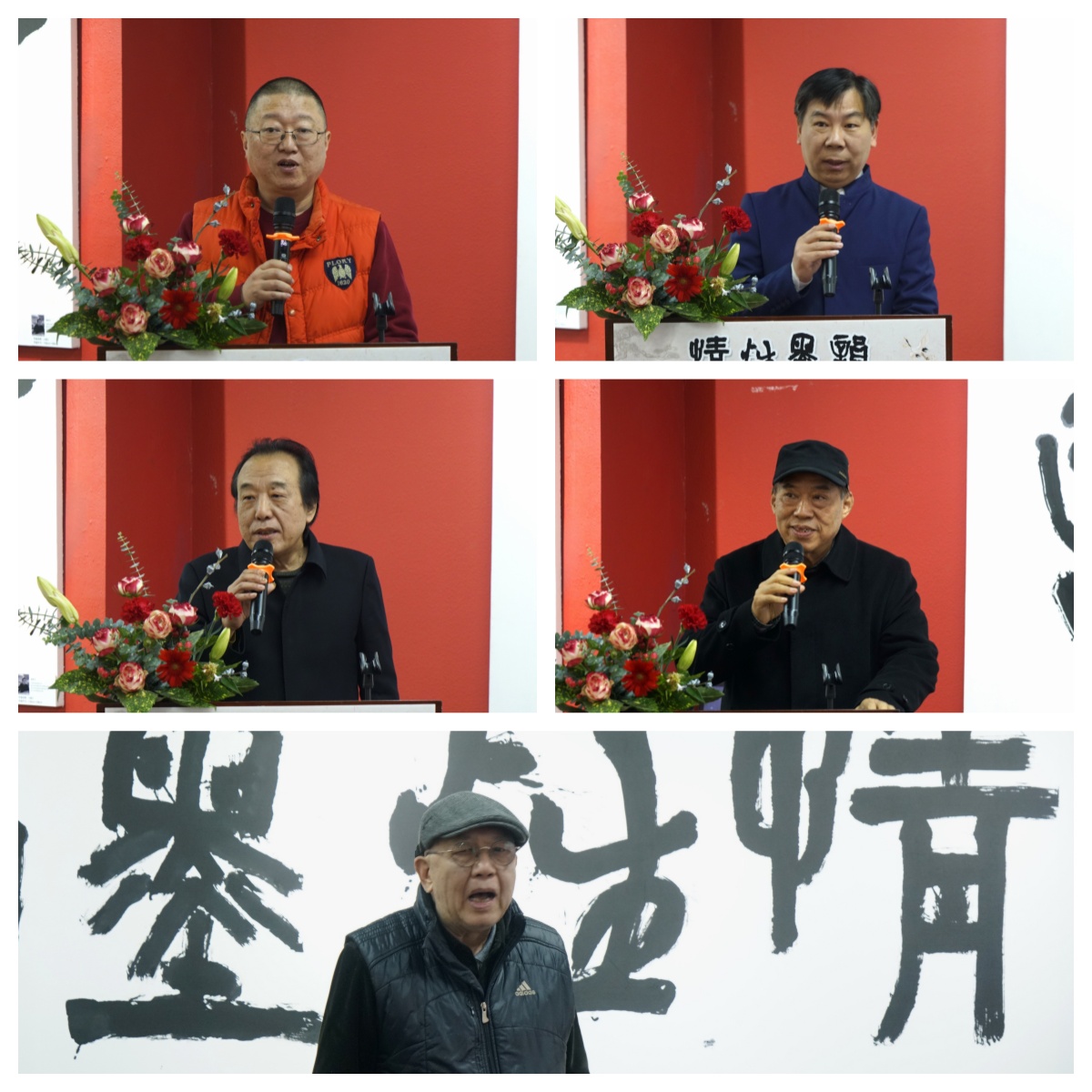出席开展仪式的领导和嘉宾有:湖北省文联原党组书记、湖北省书法院院长刘永泽,湖北省书法家协会名誉主席徐本一,湖北省书法家协会顾问王军,湖北省书法家协会副主席、湖北省书法院副院长樊利杰,武汉市文联副主席、武汉书法家协会副主席、华中师范大学美术学院教授柳国良,武汉书画研究会会长曾雪萍,武汉书画研究会书记陈金,武汉书法家协会驻会副秘书长张凌厉,湖北电视台编导李卓辉、王亚,青年歌唱家马丽,湖北陈贵顺富纺织服装有限公司董事长黄浩胜,湖北顺裕贸易有限公司经理刘贻芳,武汉金康泰麟医疗管理有限公司董事长马莉、执行总裁刘亚兵,红巷艺术城董事长张孟清等。