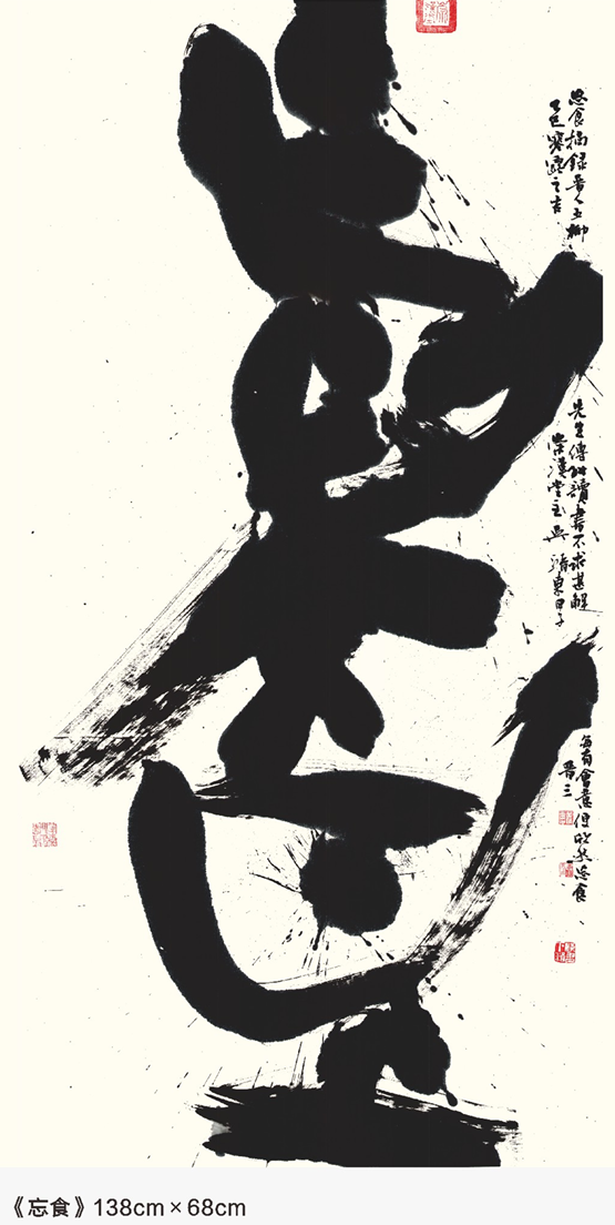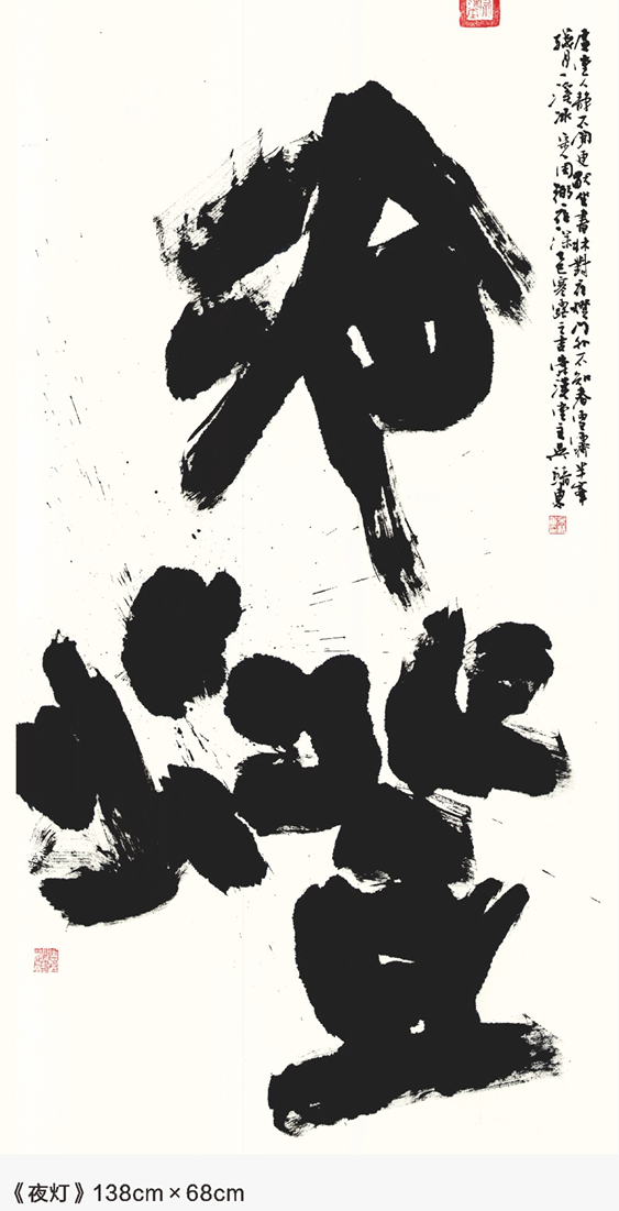 本届展览共展出了张少华、杨锦川、陈俊、吴靖东、秦元昌、向明、姚洪磊、丁保卫、张建思、向中盛、黄金平、张玉娟、胡京山、艾新等14位书法家的70幅书法作品,也是“丰墨堂”探索大字书法艺术创作的第三次线下汇报展。湖北省书法家协会学术委员会副主任姚洪磊以“丰墨堂”学术主持的身份主持了本场活动。首先,中国书法家协会会员、武汉书法家协会副主席、“丰墨堂”副会长秦元昌向大家介绍了本次活动的筹备情况,同时,结合自身在大字书法上的创作体验和因之而拓宽的笔墨表达意境与在座的各位进行了分享。中国书法家协会会员、“丰墨堂”学术主持杨锦川就“丰墨堂”的创作理念进行了解读,结合明代傅山“四宁四毋”书学审美,借以丰墨堂的大字创作,从作品的布局、墨像和文意的抒发,来重新识读什么是书法真正的“美与丑”,同时,表示希望通过丰墨堂的大字书法探索展,进一步拓宽观者的审美视野,激发更多的书法人投入到大字书法艺术创作。湖北省文联原党组书记、湖北省书法院院长刘永泽发表了热情洋溢的致辞,指出“丰墨堂”艺术群体的聚集,是大字书法艺术创作不可多得的艺术团队,成立四年以来,一直迈着探索进取的步伐,活跃在湖北书坛,取得的成绩是值得称赞和鼓励的,同时,对“丰墨堂”崇尚的团队精神、传承经典与诗意情怀给予了高度的评价和肯定,并对其未来的发展给予了新的期许。湖北省书法家协会名誉主席、著名书法家徐本一先生宣布展览开幕,大家移步逐一观展。观展期间,参展的各位艺术家不时地与观者进行互动,使活动沉浸在探讨交流的学术氛围中。