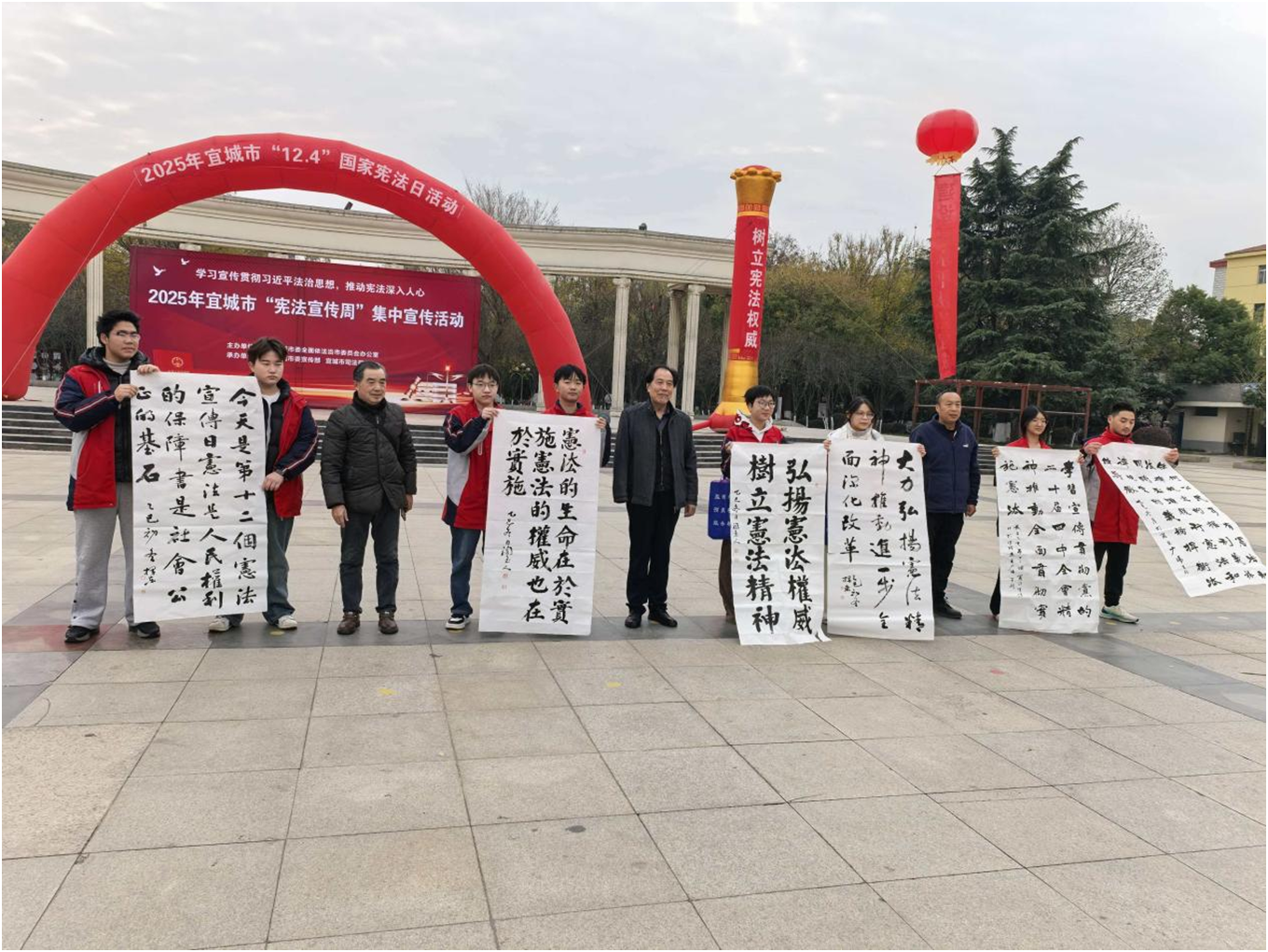 12月4日,宜城文联组织市书法家协会骨干走进燕京广场,以笔墨为媒开展“12·4”国家宪法日主题宣传活动,将法治精神与传统文化深度融合。