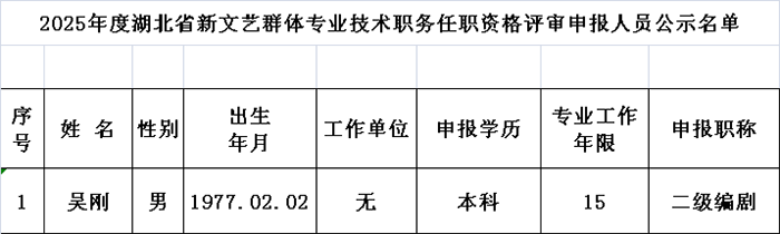 附件:2025年度湖北省新文艺群体专业技术职务任职资格评审申报人员公示名单