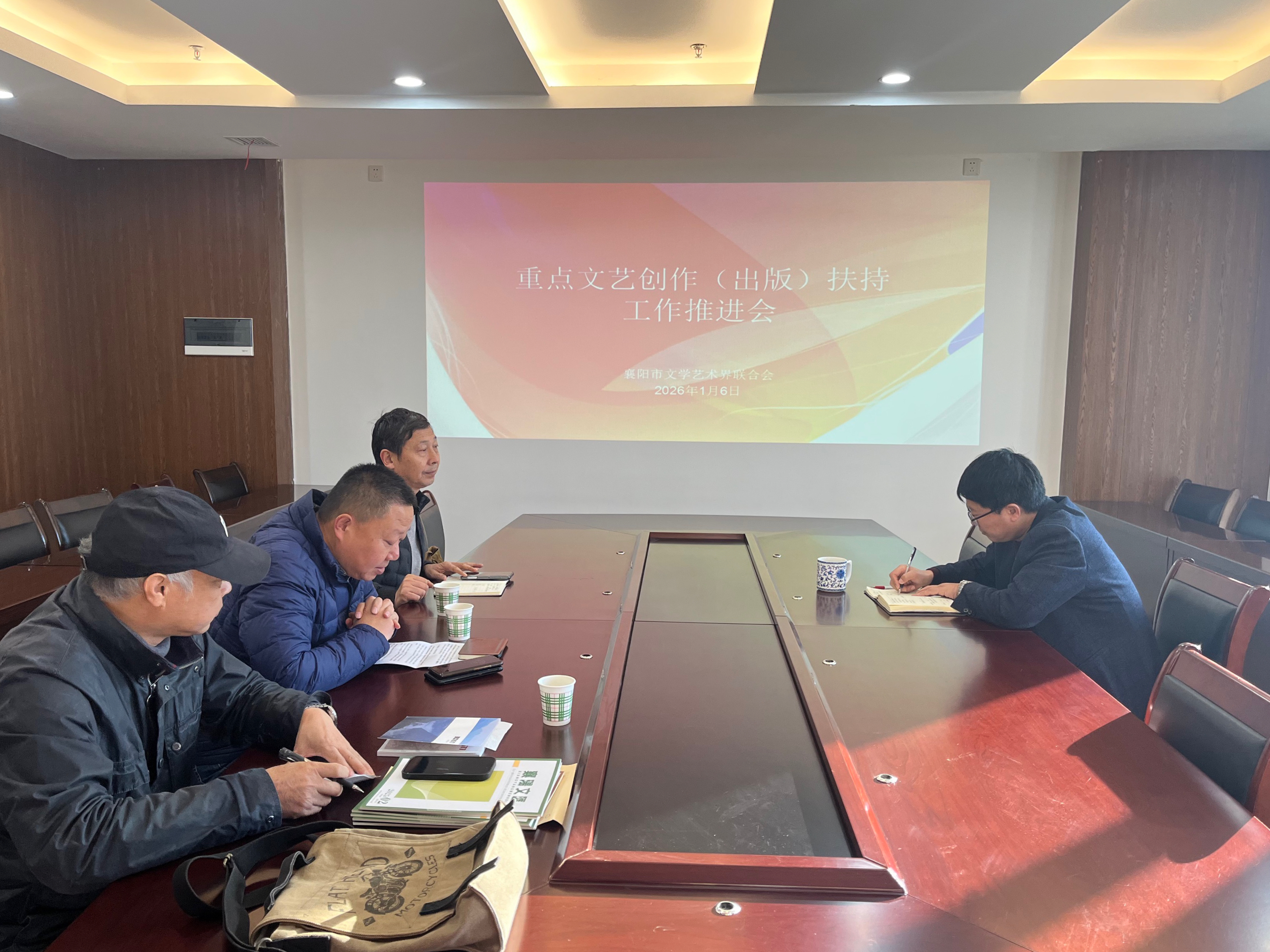 2026 年 1 月 6 日,市文联召开重点文艺创作(出版)扶持工作推进会,2025 年度签约的部分创作扶持项目主创团队及相关文艺家协会主席参加会议。