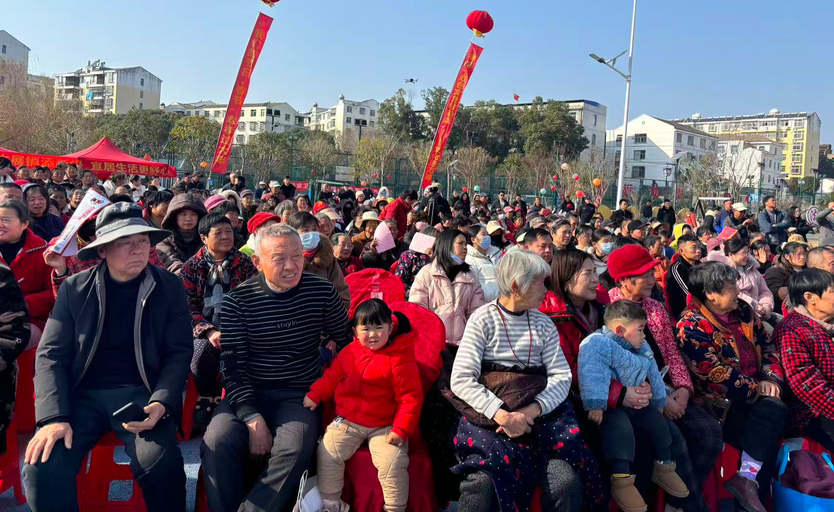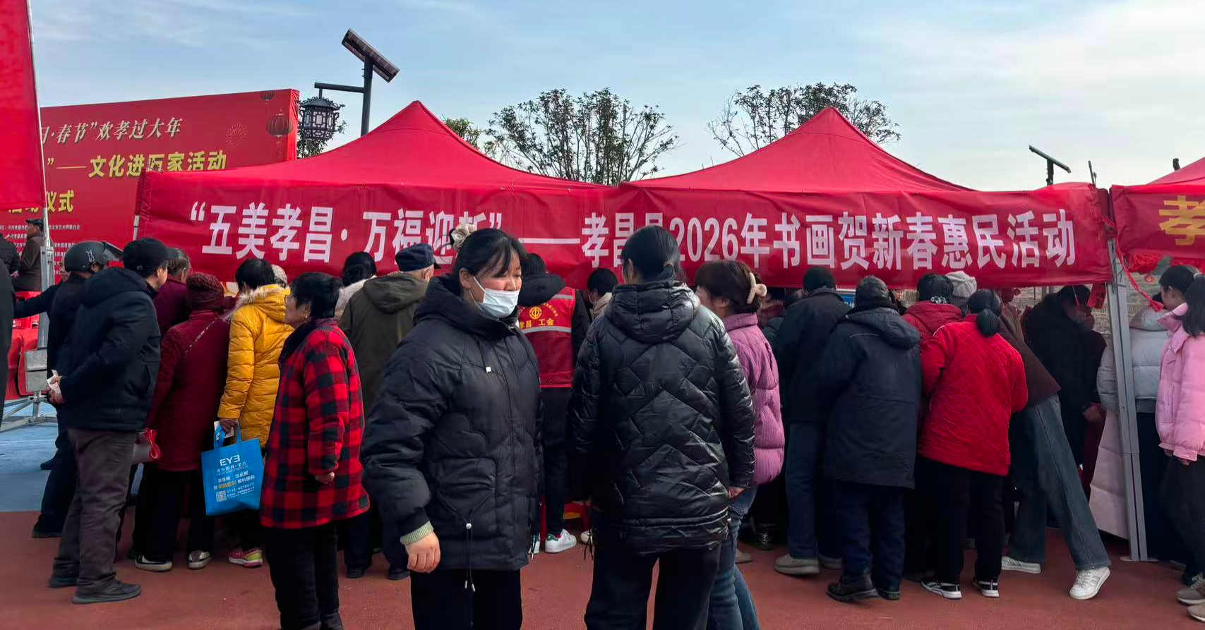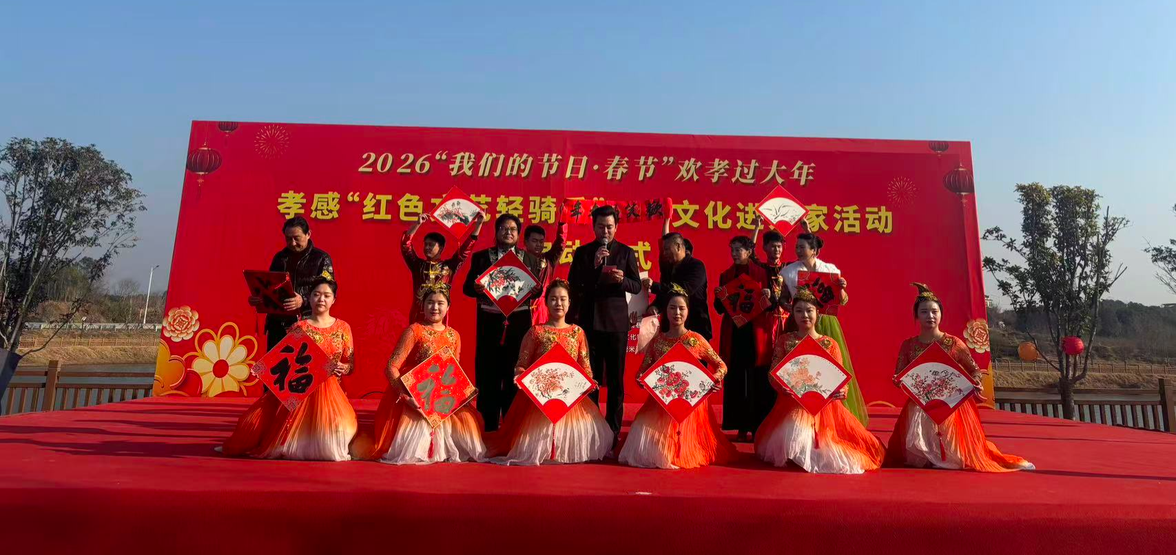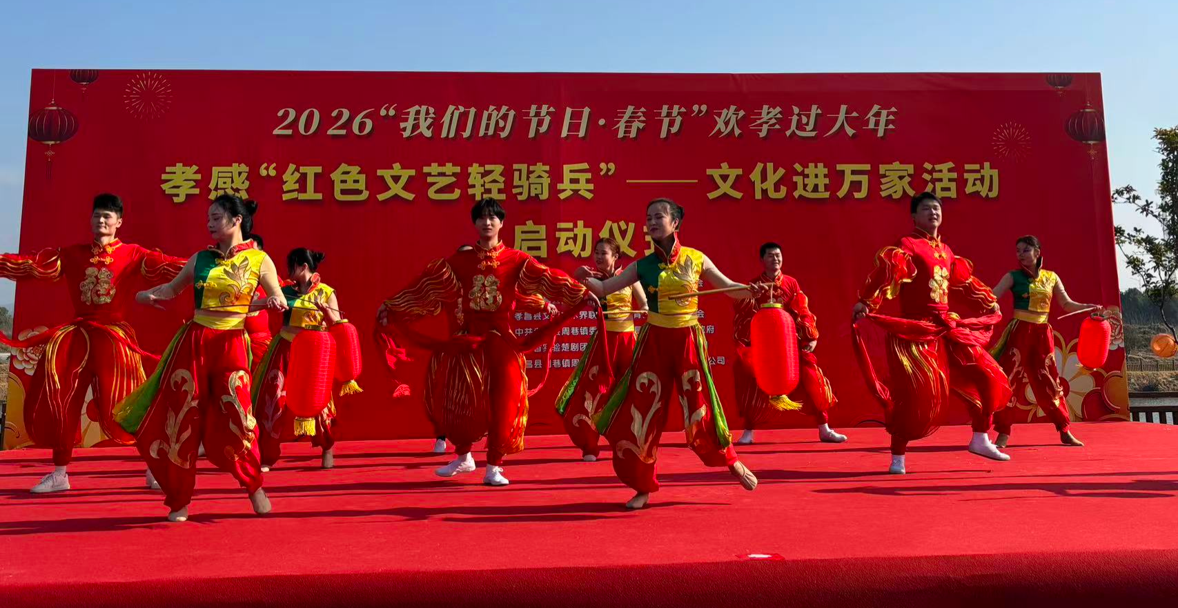 1月9日,孝昌县周巷镇新龙湖法治文化广场上灯笼高挂、人头攒动,由市委宣传部、市文联等单位联合主办的2026年“我们的节日·春节”欢孝过大年——孝感“红色文艺轻骑兵”文化进万家活动在此热闹启动,通过文艺演出、文化惠民、农特展销等形式,为当地群众送上一场丰盛的新春文化盛宴。