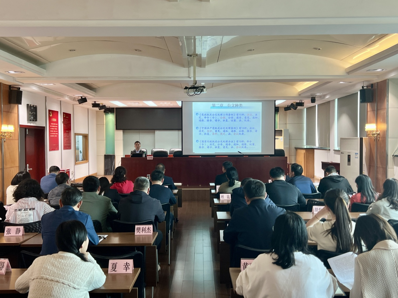 本次培训班(第二期)以公文处理与写作为主题,邀请省委办公厅、省政府办公厅有关同志分别以《党政机关公文处理工作基本规范》《怎样写公文》为题,系统传授了公文写作起草思路和经验方法,并结合自身多年综合文稿起草工作经验,重点讲授公文格式与行文规范,并对文稿的框架思路进行了具体指导。