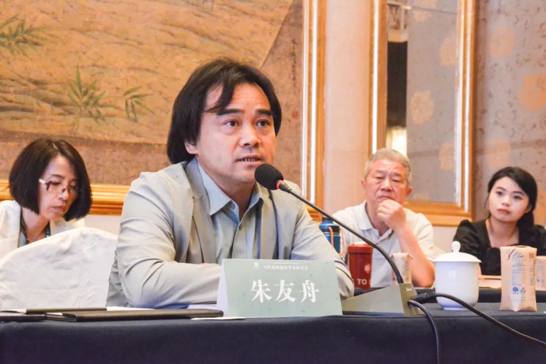 朱友舟提交的论文为《锋铩芒角,方笔铺毫——论上博竹书<容成氏>书风 》,研讨会上,他还从楚简地域性概念、楚简笔法在演变过程中的趋势、与秦简笔法结构的异同及隶变等问题入手来思考当代楚简书法创作。