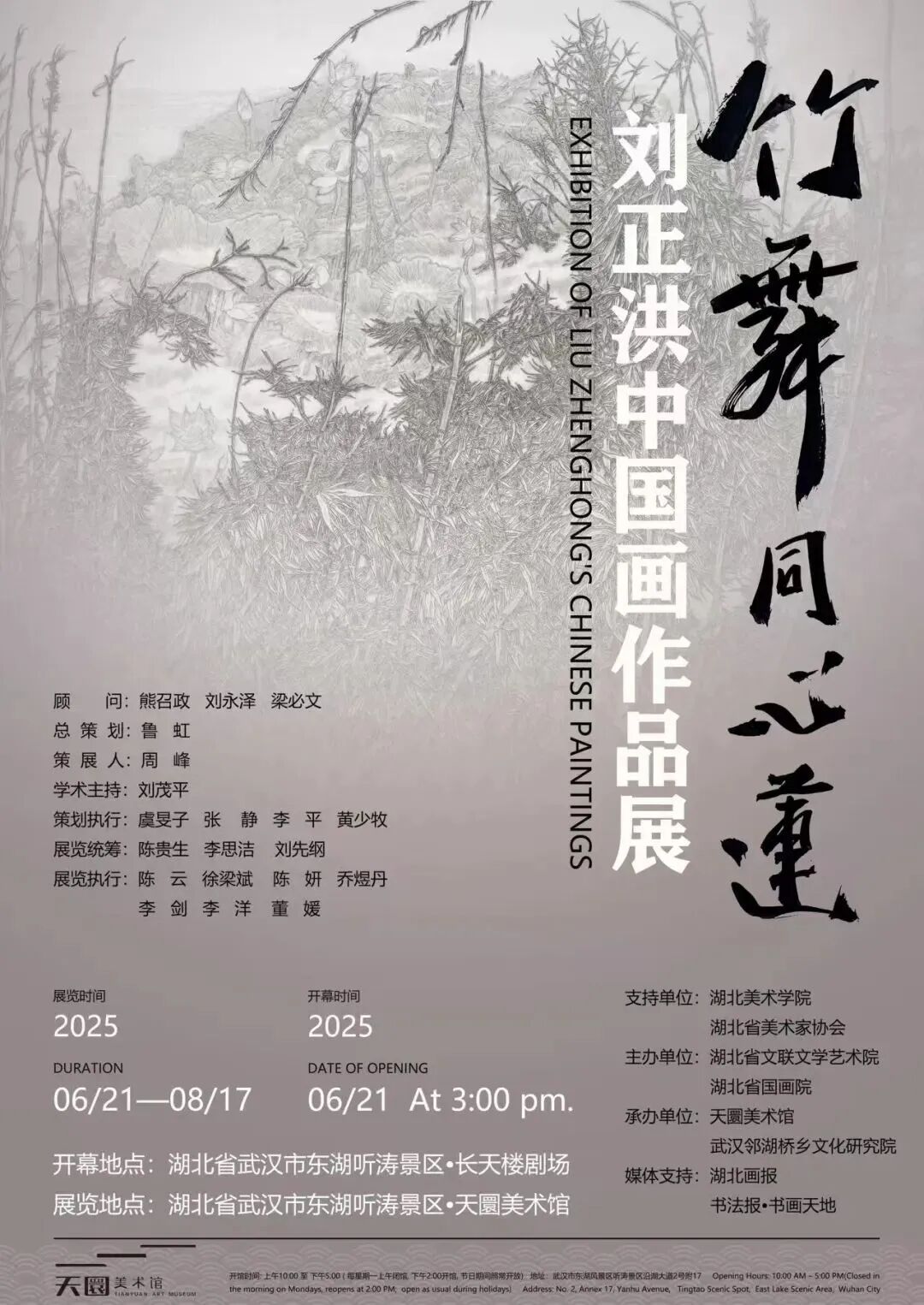 《竹舞同心莲》展览的诞生,像一场恰逢其时的缘分。谈及缘起,刘正洪眼中满是感慨。2025年3月,他在东湖天圜美术馆参加笔会时,其笔下灵动的线条、雅致的色彩深深打动了美术馆负责人,对方当场提出为他办展的邀请。彼时,刘正洪正为筹备十年一次的个人大展积累作品,而去年创作的“竹舞同心莲”系列恰好广受好评,一场“以小展备大展”的计划就此敲定。