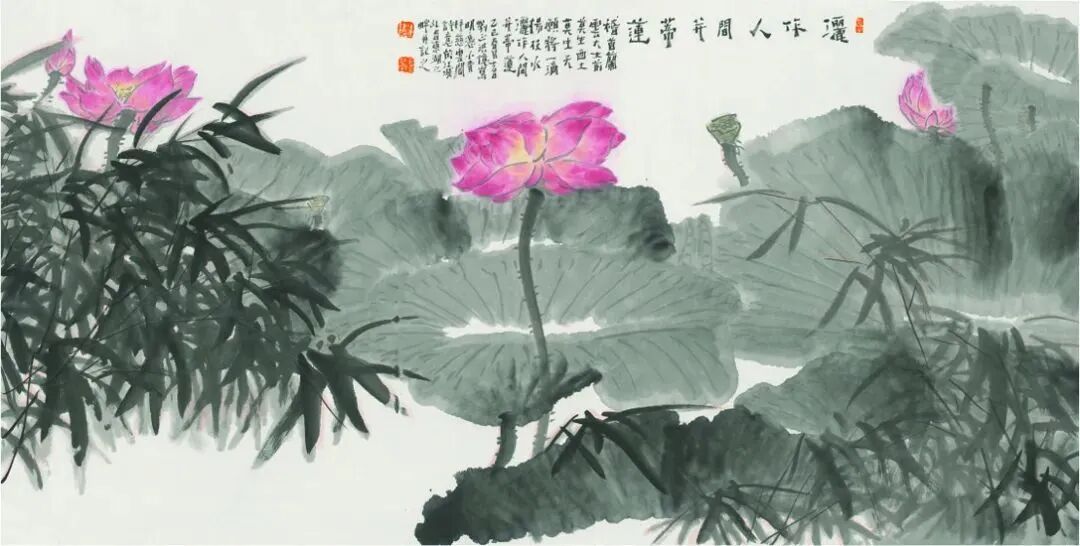 正是这份坚定的文化自觉,让他的作品始终紧扣时代脉搏——从《废墟上的春天》中象征重生希望的竹影,到如今《竹舞同心莲》里凝聚的人类命运共同体理念与团结力量,每一笔都饱含着对国家与人民的深情。