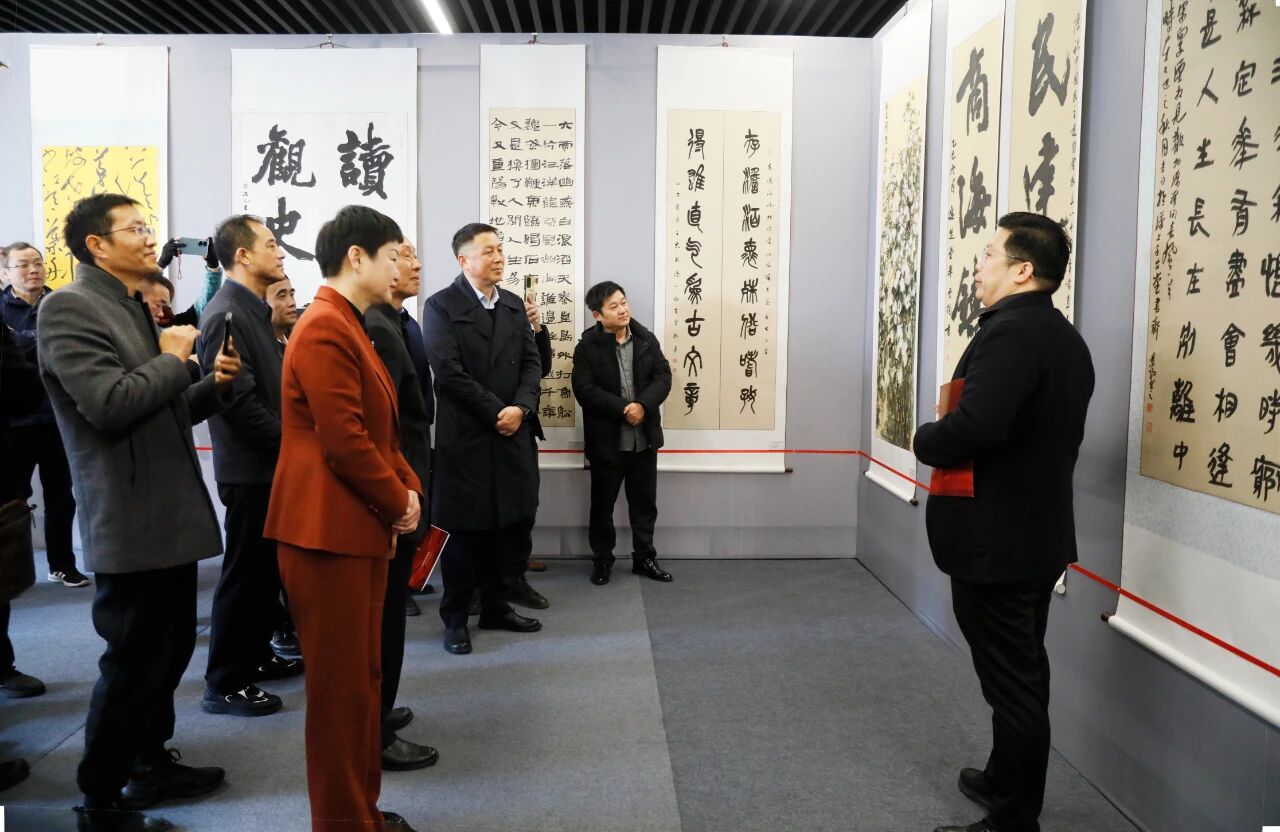 12月14日,民建荆州市委会在会员企业湖北斌汇科技有限公司成功举办“翰墨颂同心·丹青绘荆楚——庆祝中国民主建国会成立80周年”书画展。市人大常委会原主任易法新,民建荆州市委会主委杨红娟以及市人大、市政协、市委统战部、市工商联、长江大学的有关负责同志,民建荆州市委会的老领导、各基层组织主委、各室部院专委会负责人,市书法家协会和市美术家协会的会员代表共计150余人参加开幕式。