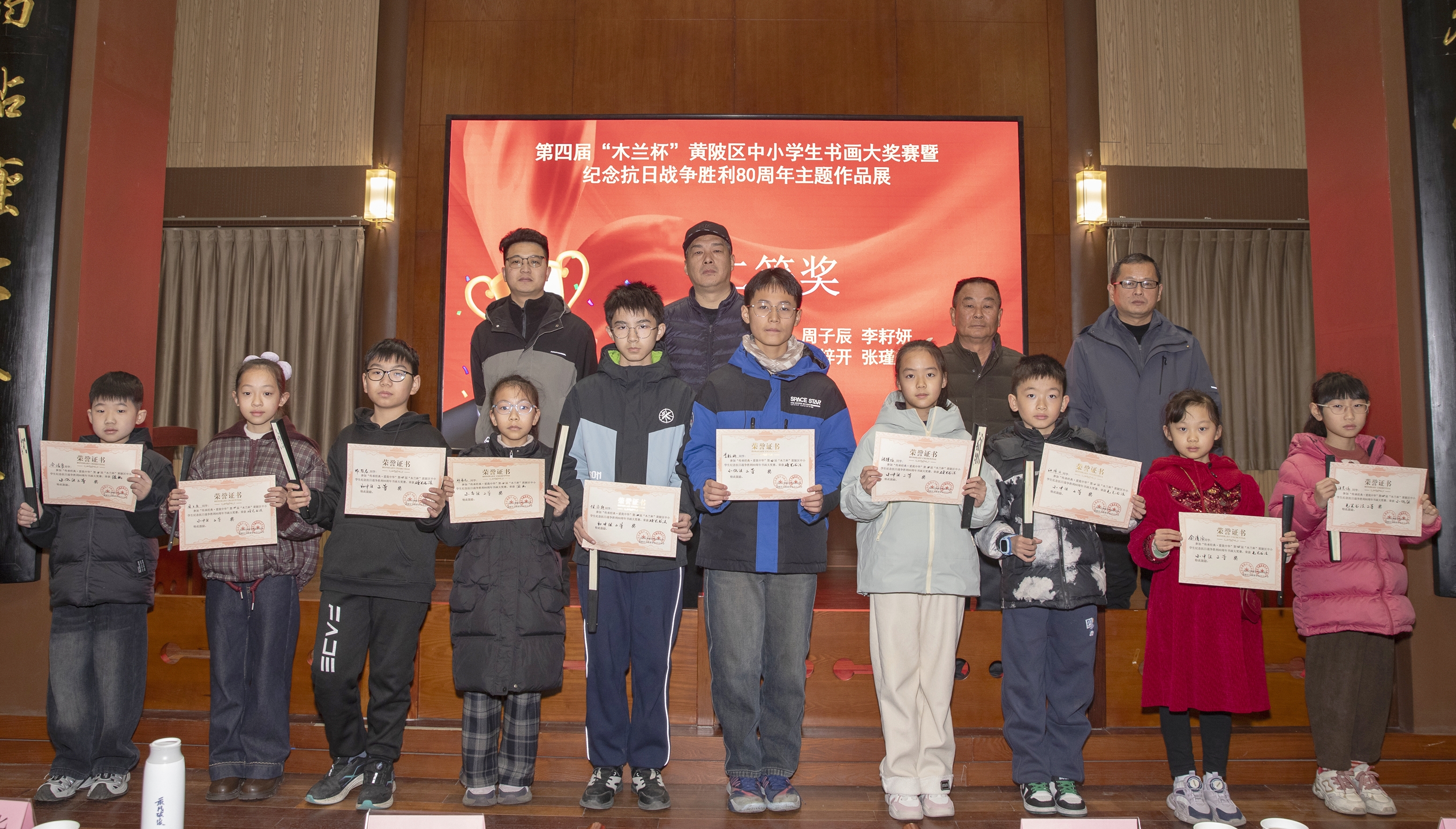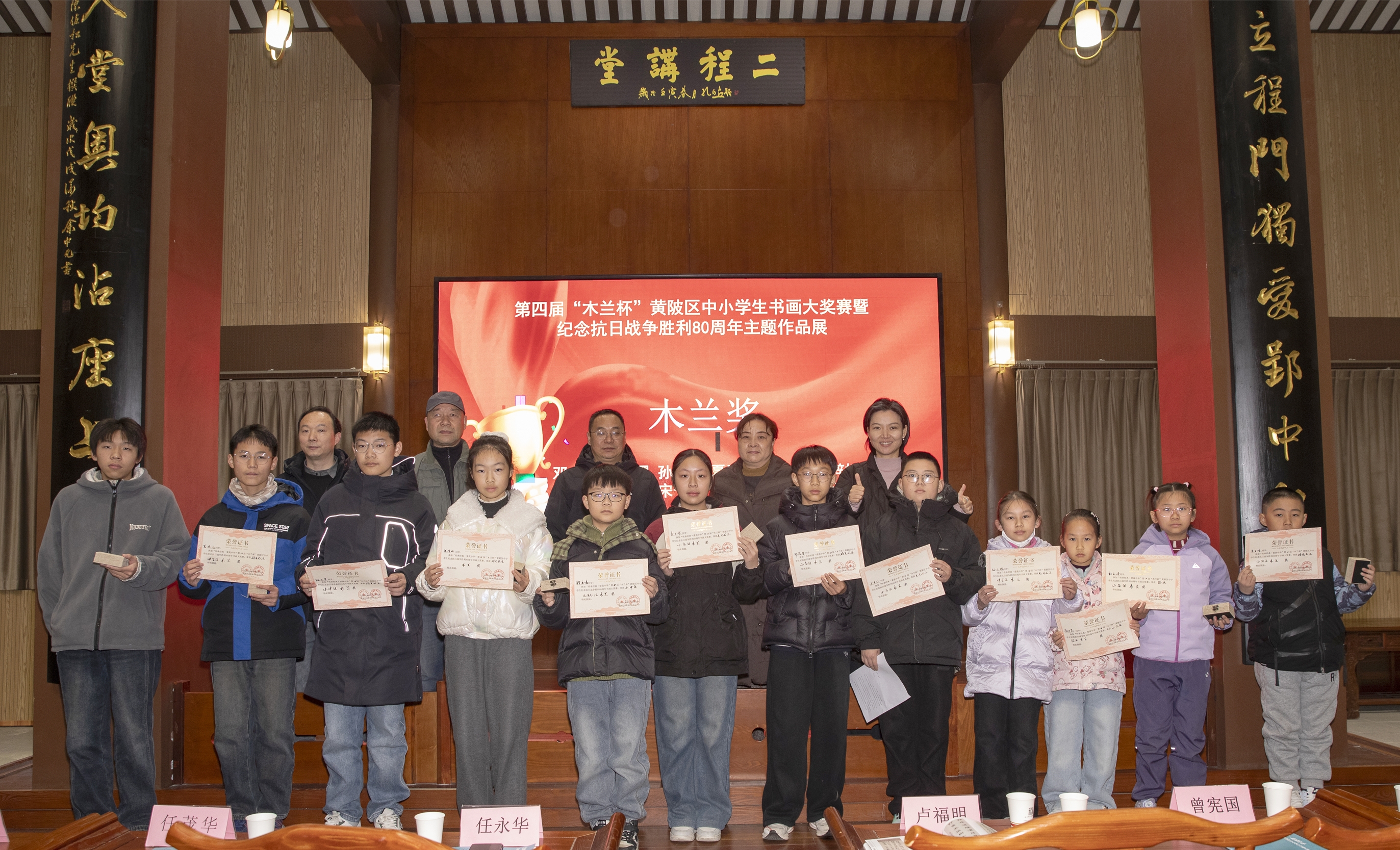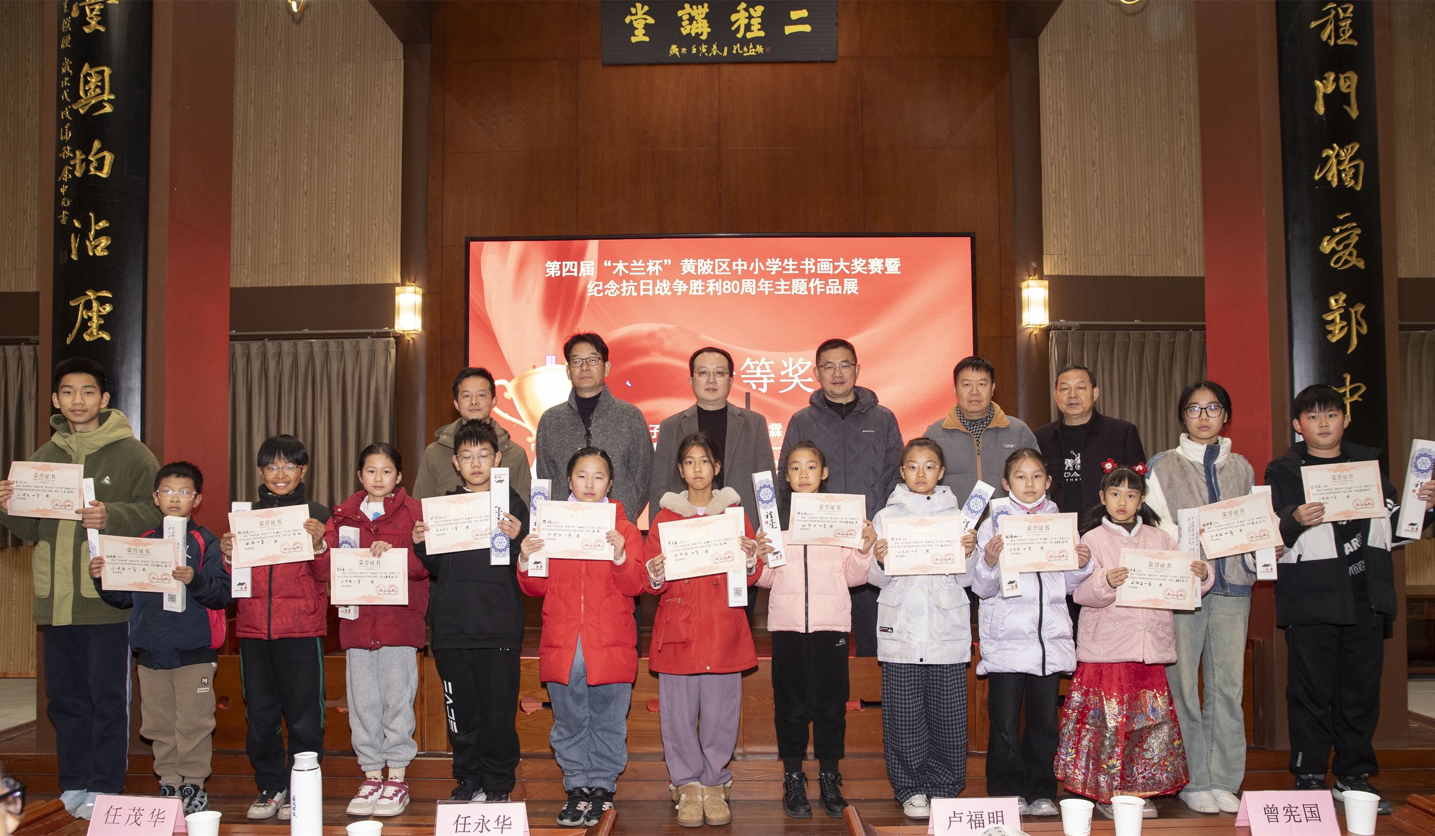 12月13日,传承经典·爱我中华——黄陂区第四届“木兰杯”中小学生书画大赛暨纪念抗日战争胜利80周年主题作品展开幕式在二程书院藏书楼举行。活动由中共黄陂区委宣传部指导,黄陂区文学艺术界联合会主办,区书画家协会、木兰文旅投及区书画家协会少儿分会联合承办。活动旨在以书画艺术传承中华优秀传统文化,紧扣抗战胜利主题,为广大中小学生搭建美育实践与爱国主义教育平台。