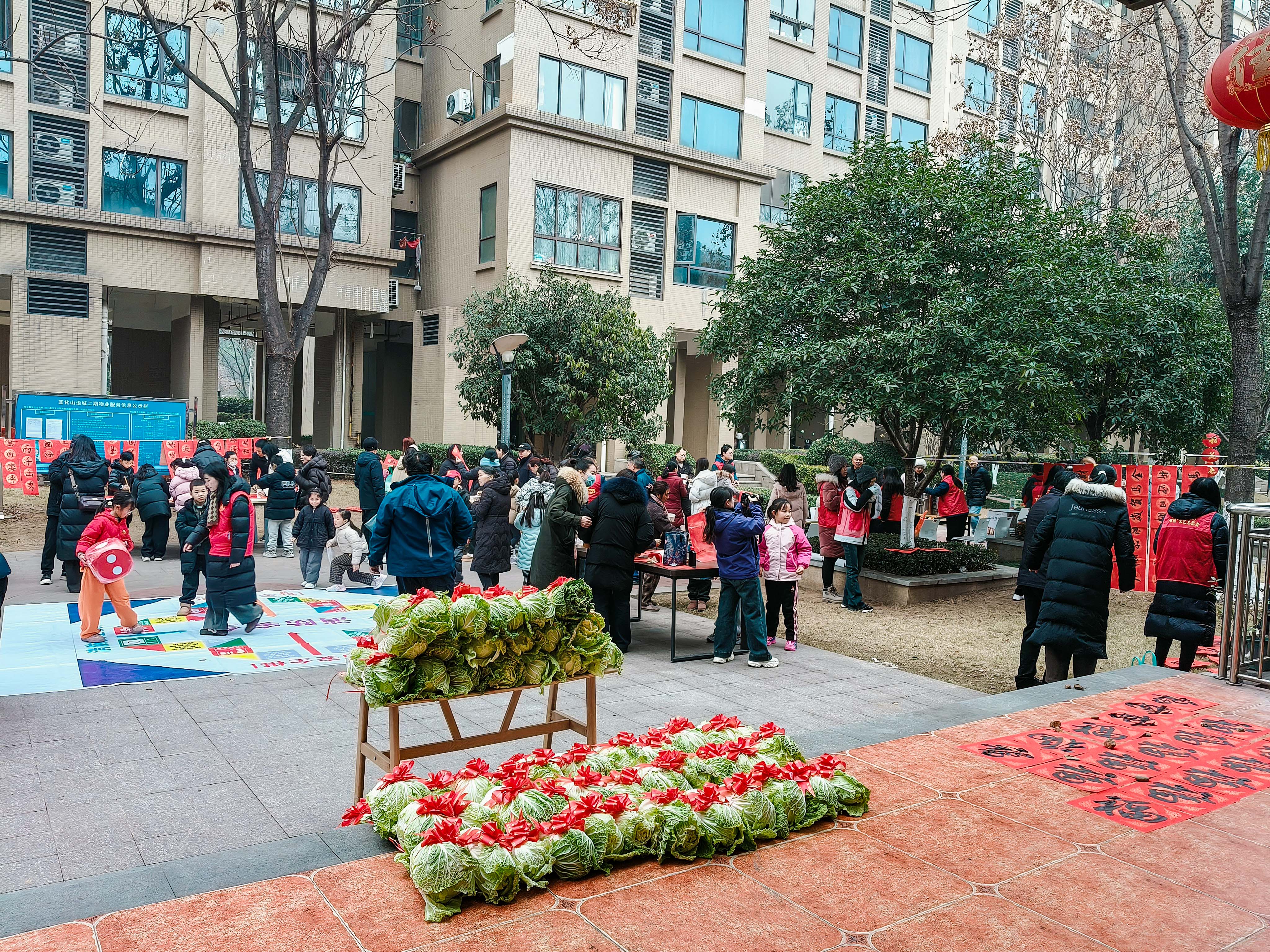 居民们热情高涨,一面积极参与社区组织的消防安全教育等趣味活动,一面有序地排队领取春联和福字,欢声笑语让整个社区沉浸在节日的喜庆氛围中。