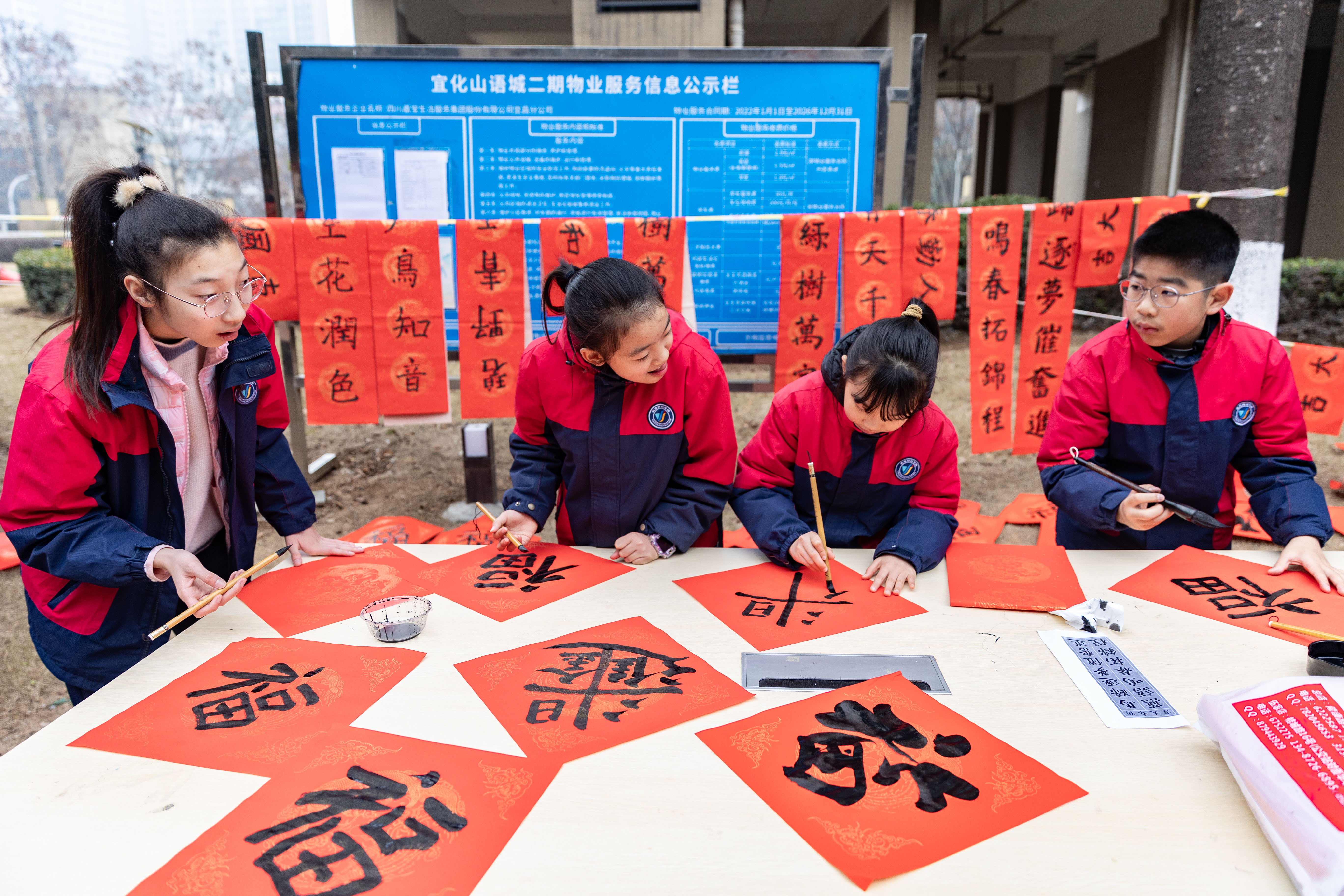 活动现场,一张张桌子依次排开,书法家们泼墨挥毫,一个个福字、一副副春联在笔下绽放,带来新春的暖意与浓浓的年味。活动还吸引了许多社区学童参与,他们在书法家的指导下学写春联,稚嫩的笔迹传递出文脉赓续的深深情韵。