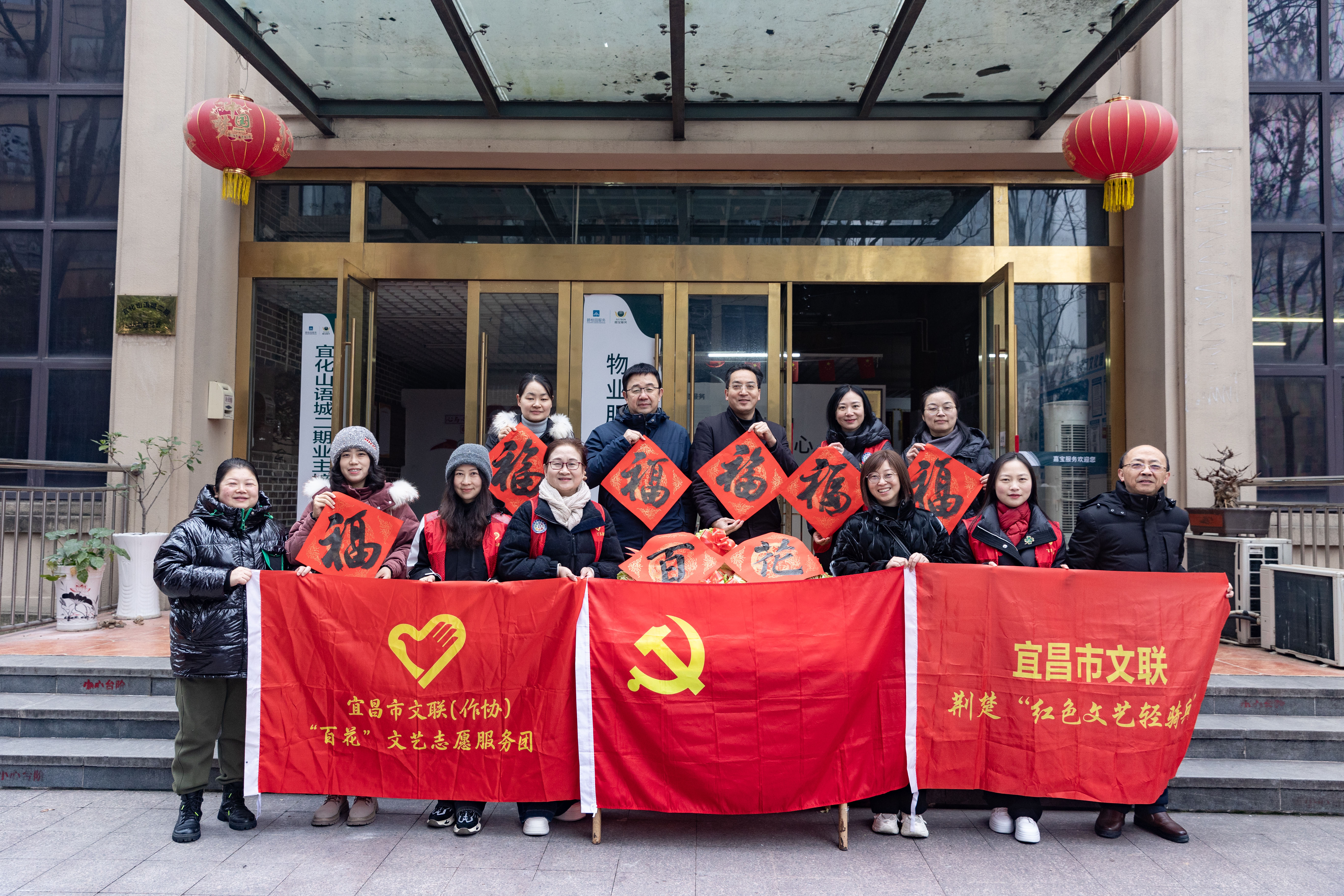 1月28日,宜昌市文联机关及二级单位全体职工前往伍家岗区魏家湾社区宜化山语城(二期),开展“文艺进社区 墨香贺新春”送春联活动。
