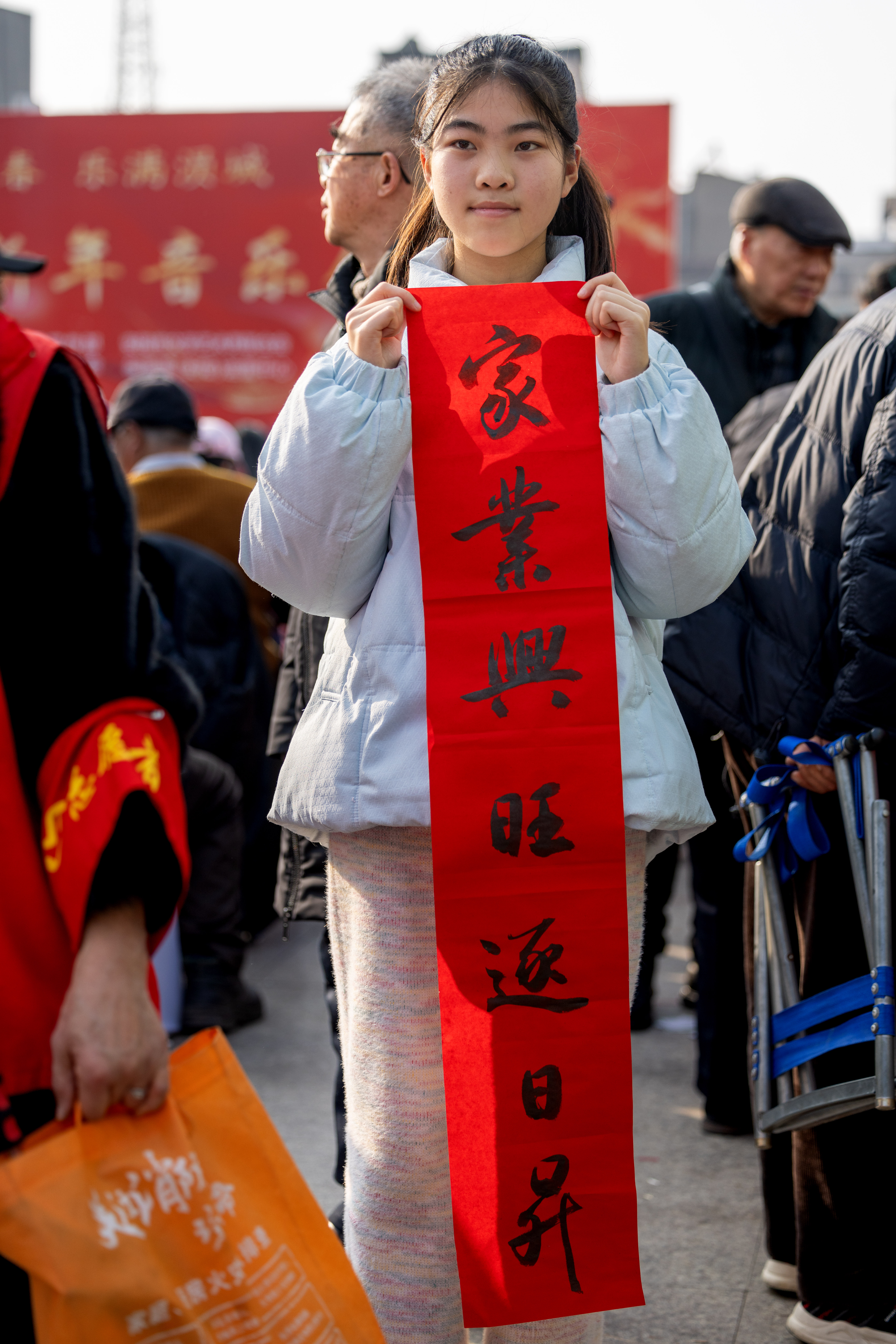 与此同时,广场两侧的文艺惠民活动也吸引众多市民驻足。安陆市书法家协会的书法家们现场挥毫,一副副寓意吉祥的春联和“福”字墨香四溢;美术家协会的画家们则精心创作,一幅幅富有年味的年画栩栩如生。市民们有序排队,领取自己的春联和年画,脸上洋溢着开心的笑容。手捧墨迹未干、散发着清新墨香的春联和年画,市民们表示,这份“文化年货”既有传统韵味,又凝聚着艺术家的深情厚谊,比购买的印刷品更有意义、更显珍贵。