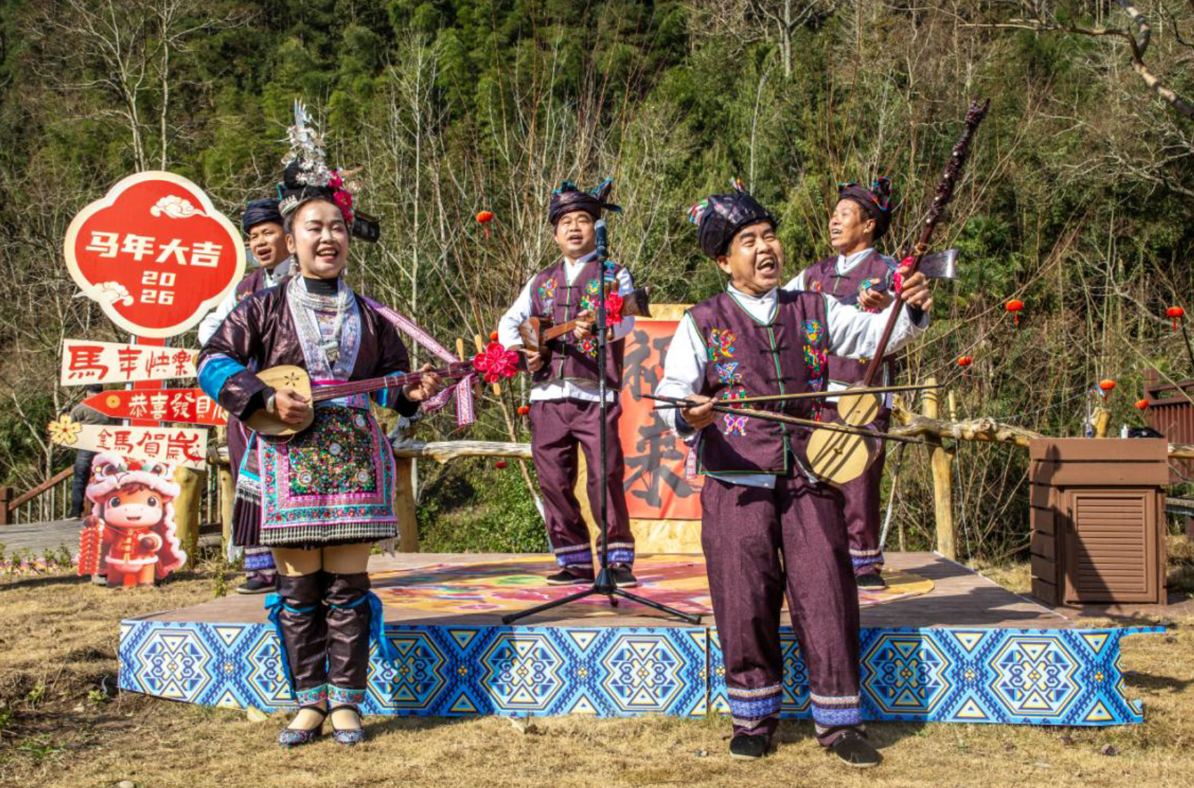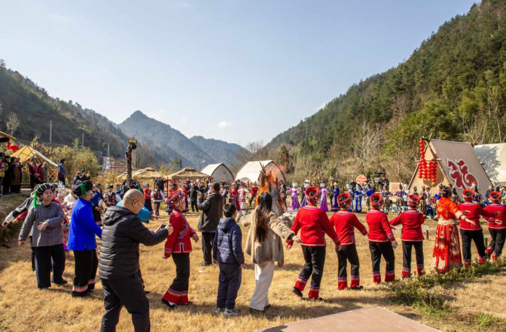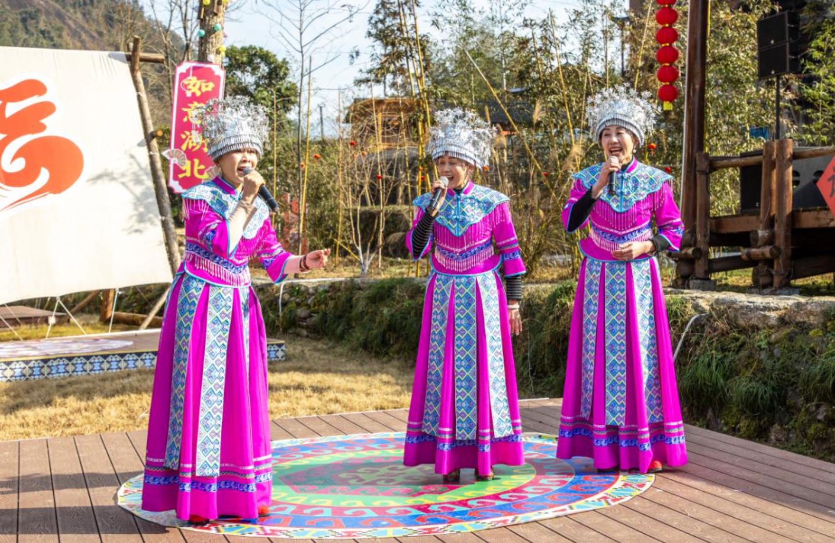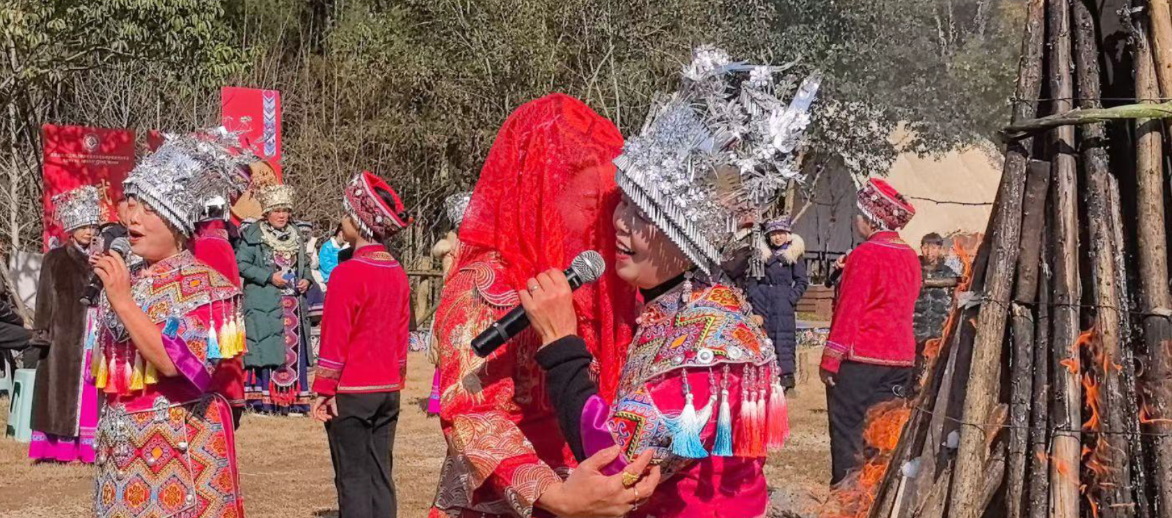 2月2日上午,宣恩彭家寨锣鼓喧天,热闹非凡,“原声悠扬,村歌嘹亮”——湘鄂渝黔四省原声民歌展演在这里盛大举办。来自湖南、湖北、重庆、贵州四省的民歌手代表将武陵山区传唱千年的原声民歌在这里唱响。省文联党组成员、副主席马尚云,中南民族大学原党委常委、副校长、教授段超,省民协主席鄢维新,中共宣恩县委副书记、宣传部长陈久奎,恩施州文联专职副主席张情,省民协秘书长黄超芬,省内有关民歌专家在现场观看了演出。