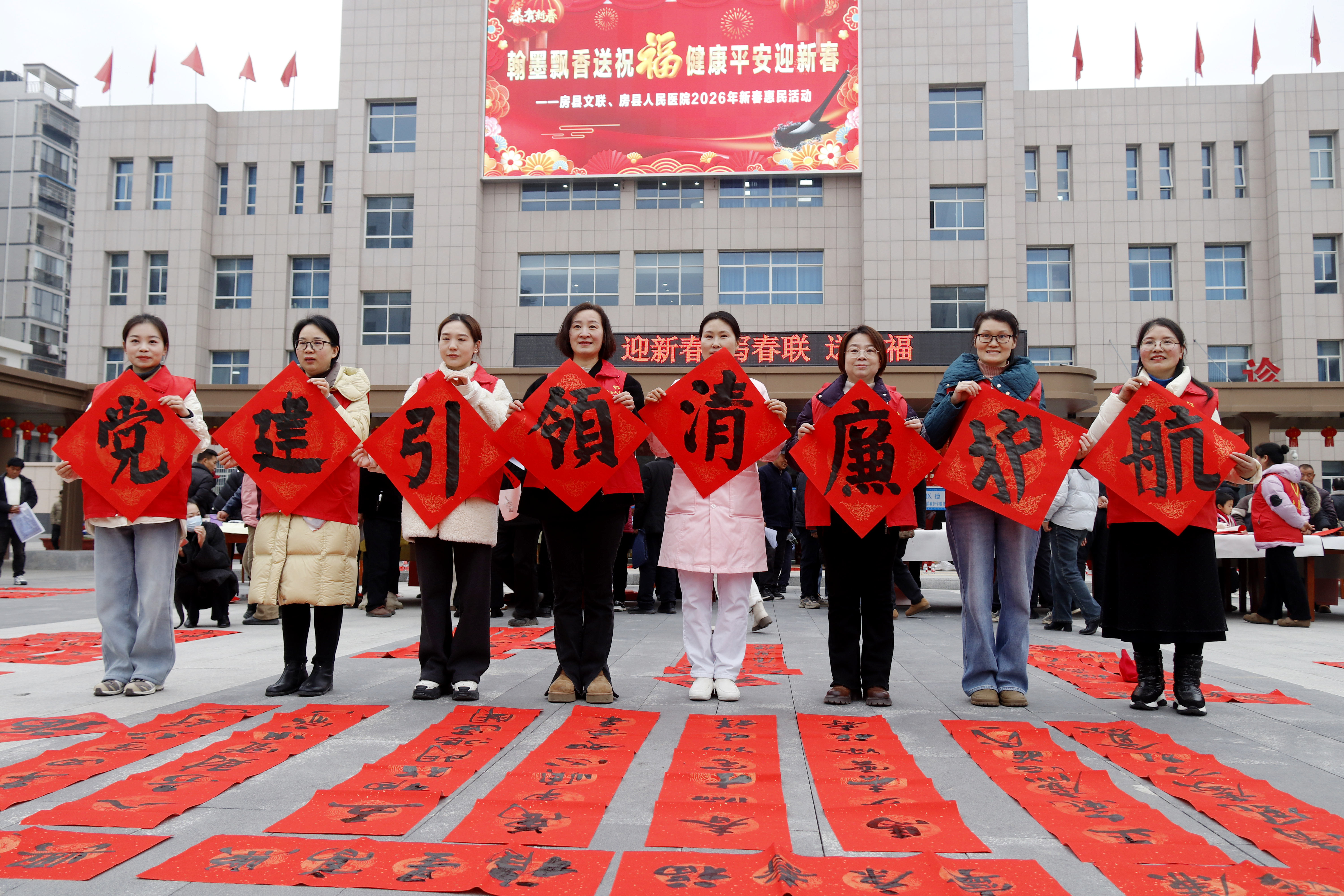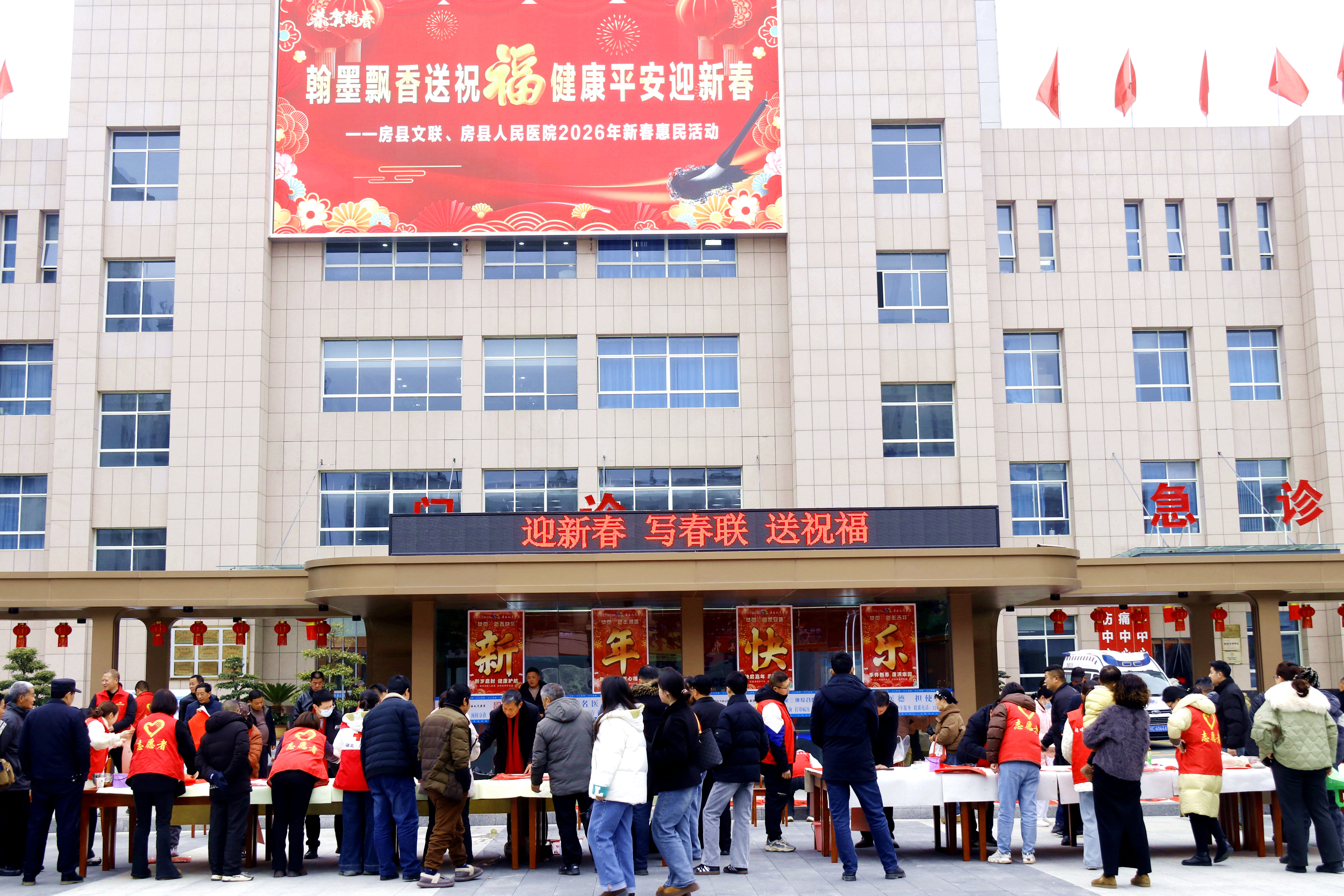 2月4日立春时节,在新建投入使用的房县人民医院广场上暖意流淌、墨香萦绕。由房县文联、房县人民医院主办,房县书法家协会承办的“翰墨飘香送祝福,健康平安迎新春”新春惠民活动在此温情开展。