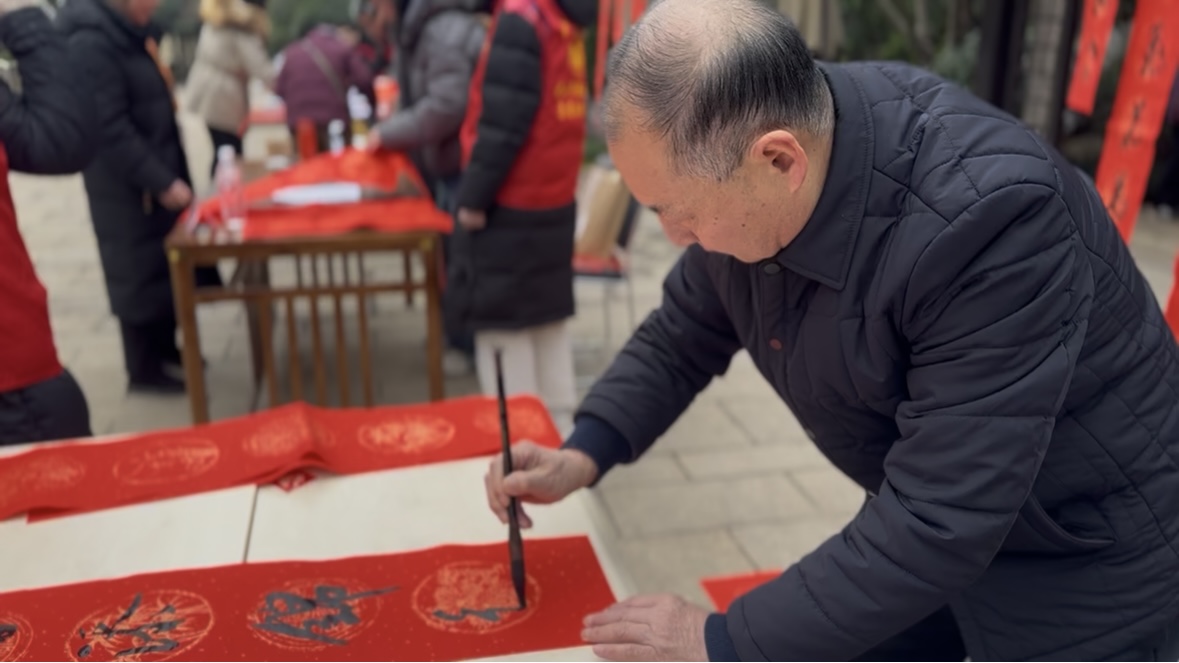 黄石港区书法家协会的书法家们饱蘸浓墨,激情挥毫,现场示范福字和对联的书写技巧,讲解笔墨章法与结构布局,以写联方式向全体居民致以新年祝福。一上午为居民书写春联和福字300余幅,居民们热情高涨,互动融洽。现场居民们喜洋洋地手捧福字和对联,自贴或赠予邻里好友,传递脉脉温情,有的还手持福字、对联和书法家合影留念,定格下温馨和谐的美好瞬间。此举掀起“写春联送祝福”系列活动高潮,受到群众好评。