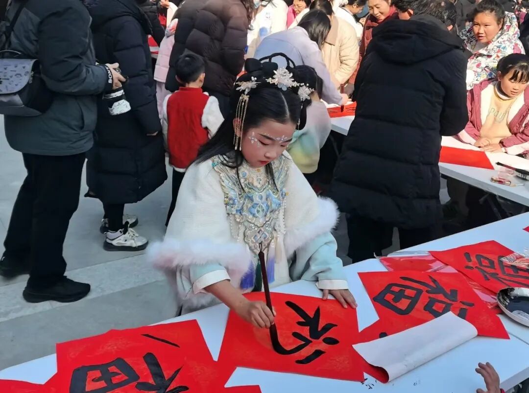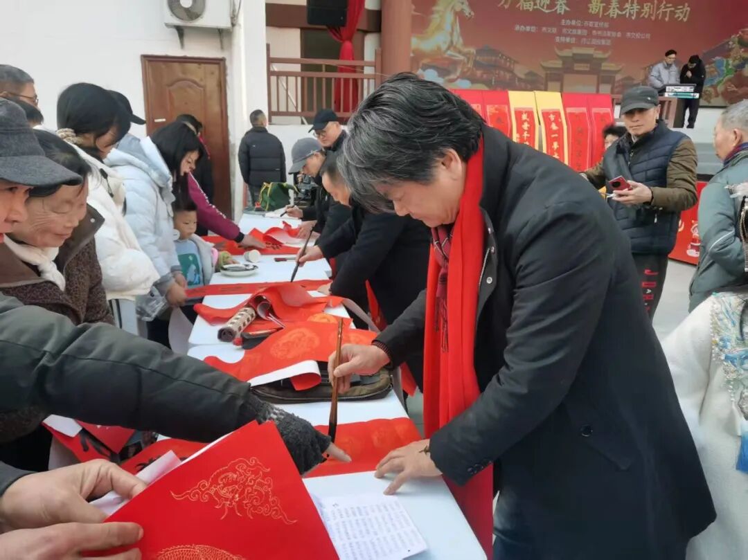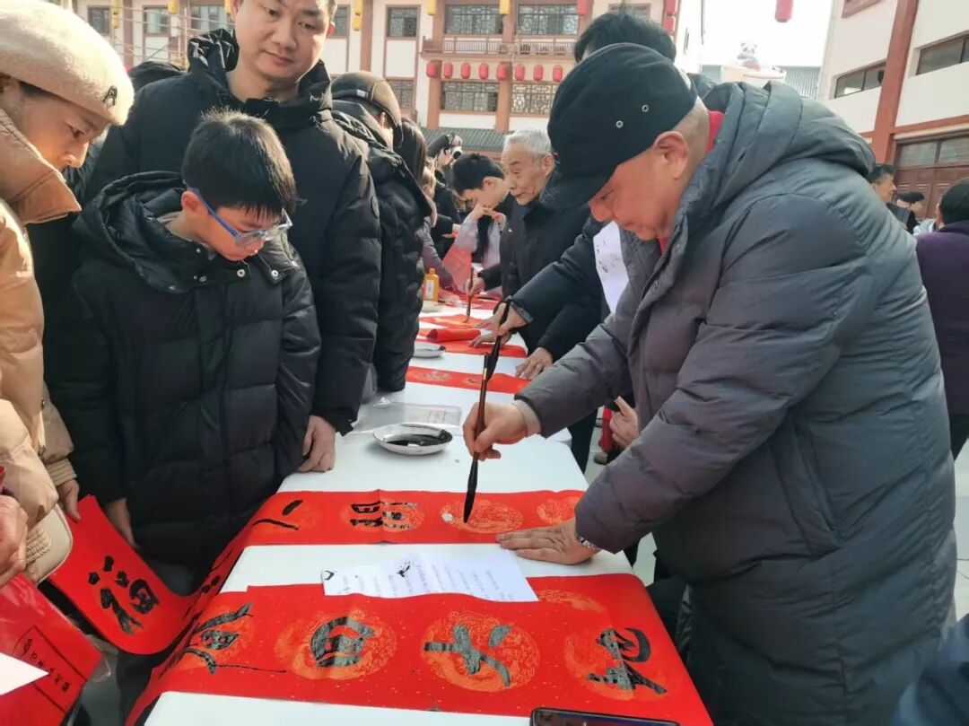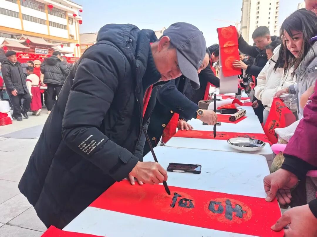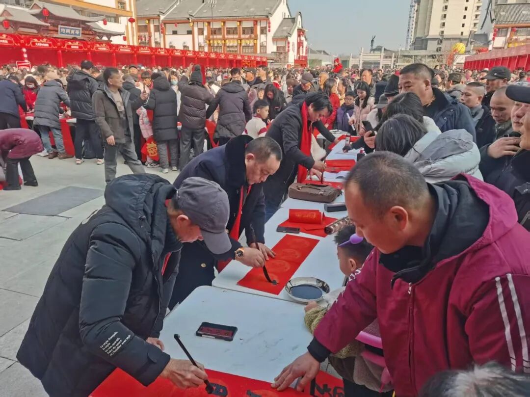 丹江口市文联主席王杰,丹江口籍著名画家、中美协会员殷进,湖北鹰台书画院及丹江口市本地书法家一起泼墨挥毫,将一副副寓意吉祥的春联、一个个笔酣墨畅的“福”字送给现场群众,一笔一划都饱含着对新春的祝福,氤氲的墨香里满是浓浓的年味儿。