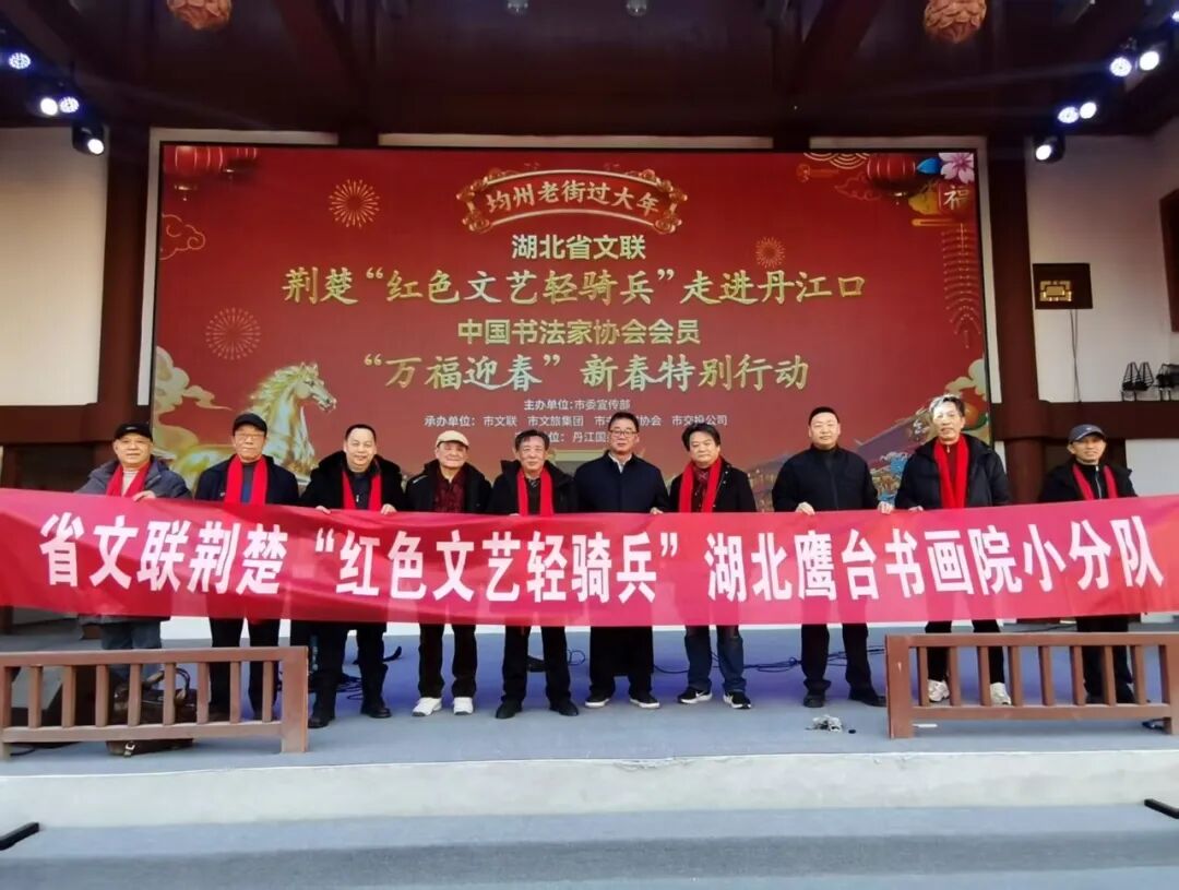2026年2月8日(腊月二十一),应丹江口市文联邀请,省文联“荆楚红色文艺轻骑兵”湖北鹰台书画院小分队专程奔赴丹江口市,为当地群众写春联、送福字,用笔墨丹青为市民朋友送上最真挚的新春问候与美好祝福。