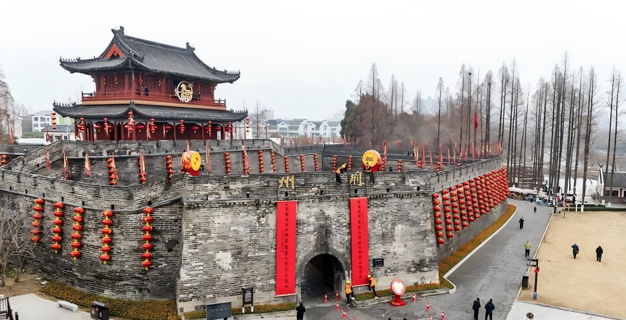 上午,荆州古城东门格外热闹。两副十余米长的大红春联在工作人员的协作下端正悬挂于城门两侧。“百凤朝阳,揽胜马蹄轻,纪郢新风堪醉我;九龙聚力,图强鹏翼健,春天故事更惊人”——这副对联既抒发了对城市焕新的赞叹,也寄寓着荆州在新时代奋发前行的昂扬姿态。众多市民游客驻足拍照打卡,城门下的欢声笑语与城楼的红联灯笼,共同绘就一幅生机勃勃的新春画卷。