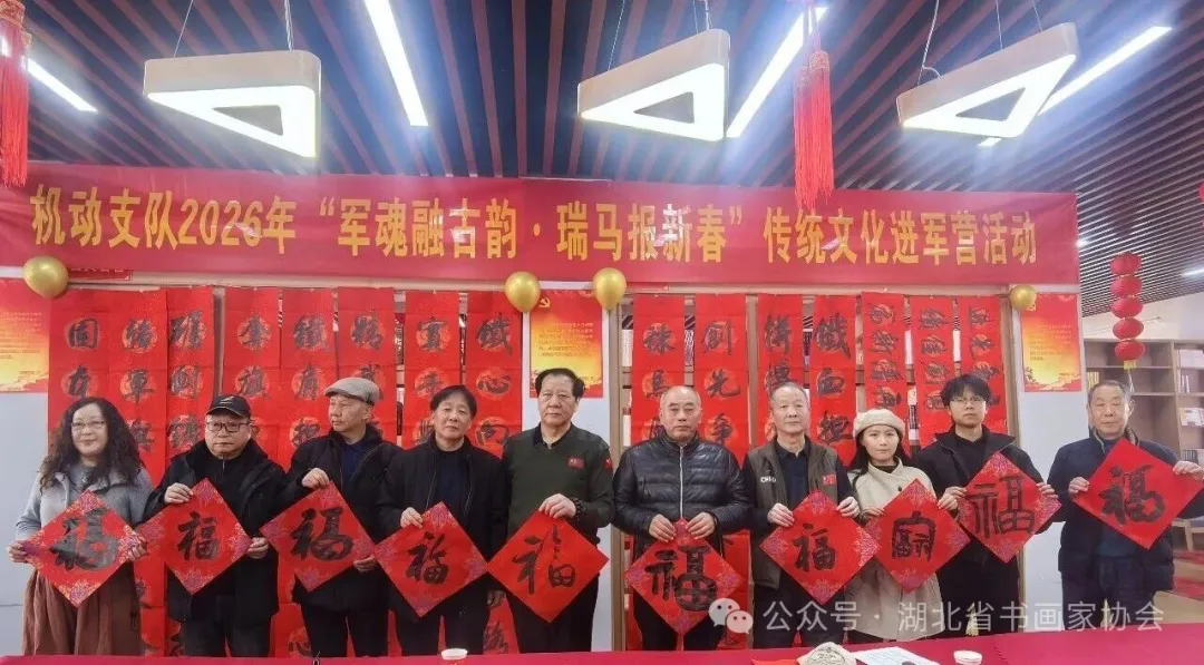 2月12日,湖北省书画家协会与湖北省武警总队机动支队联合举办的2026年“军魂融古韵·瑞马报新春”传统文化进军营活动,在机动支队文化中心温情启幕。