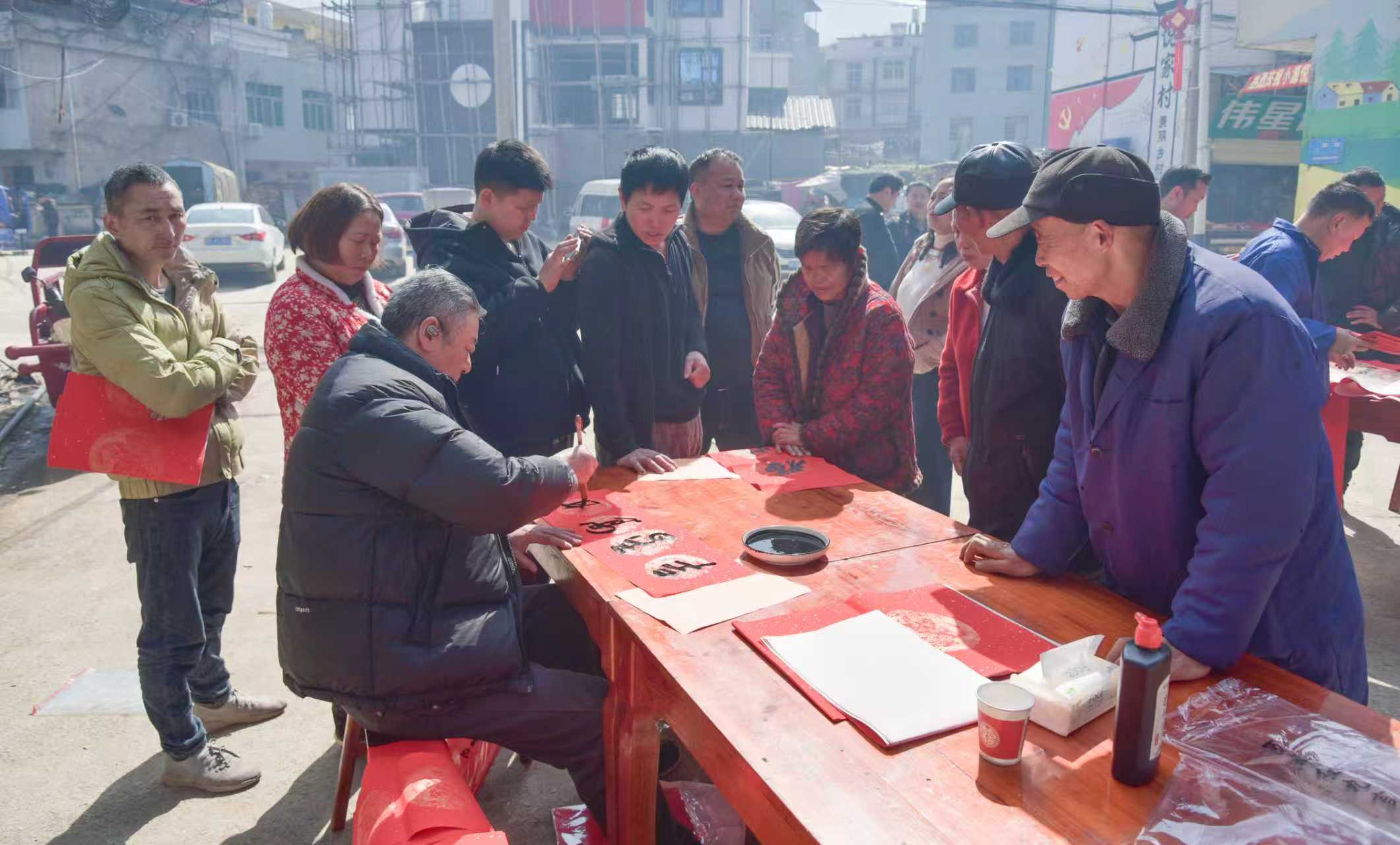 2月11日(农历小年),市总工会、市文联联合主办“2026年新春送福到乡村”文艺惠民暨创作采风活动,20余位书法家、摄影家、作家深入阳新县王英镇倪家村、王文村,通过书写春联、拍摄全家福、文学采风等形式,为村民送去新春祝福。市文联党组成员、专职副主席刘远芳,市工人文化宫党总支书记甘训红,阳新县文联副主席饶正茂等参加了活动。