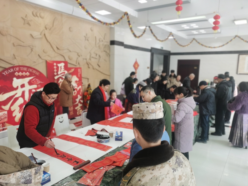 官兵们围在书法家身旁,或凝神观赏,或请教执笔技巧,在翰墨丹青中感受中华传统文化的魅力。官兵家属也踊跃参与,孩子们在大人的指导下尝试握笔写字,欢声笑语不断。近三个小时的活动里,书法家们不辞辛劳,创作了百余幅书法作品和春联,每一件都承载着对人民子弟兵的深情问候。