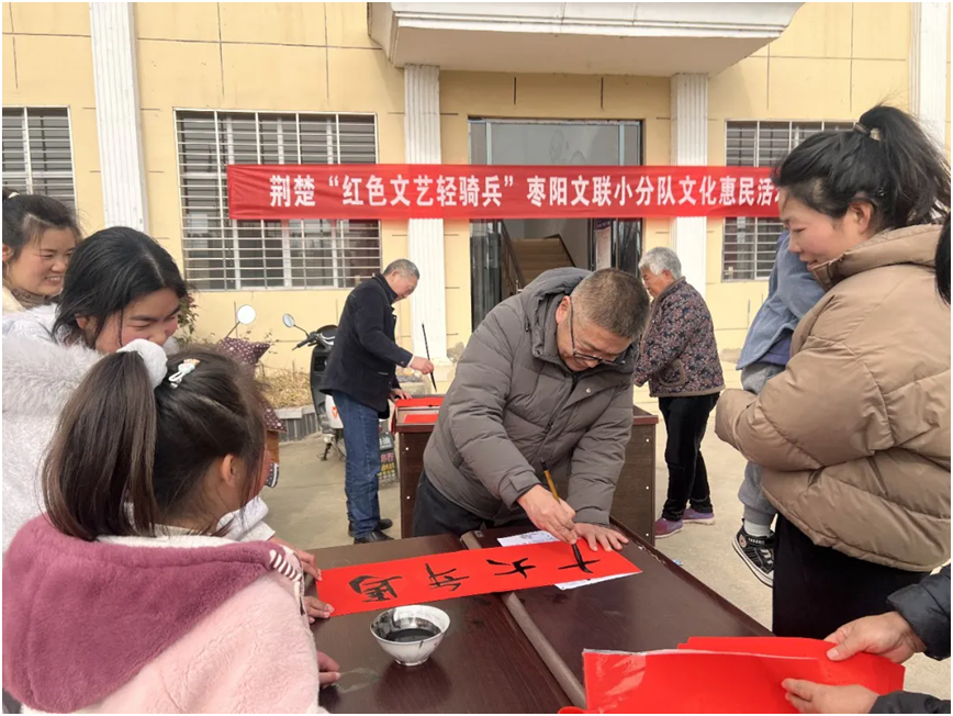 1月26日至2月13日,在农历新年即将到来之际,枣阳市文联精心组织市书画家协会、硬笔书法协会、作家协会、摄影家协会、《帝乡书画》编辑部等100 余名文艺志愿者,组建荆楚“红色文艺轻骑兵”枣阳市文联小分队,分赴全市各镇(办、区)30 余个村(社区)及市退役军人服务中心等单位,开展写春联、送祝福文化惠民活动40余场(次)。
