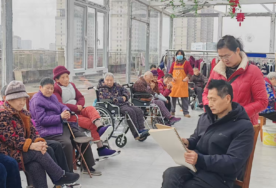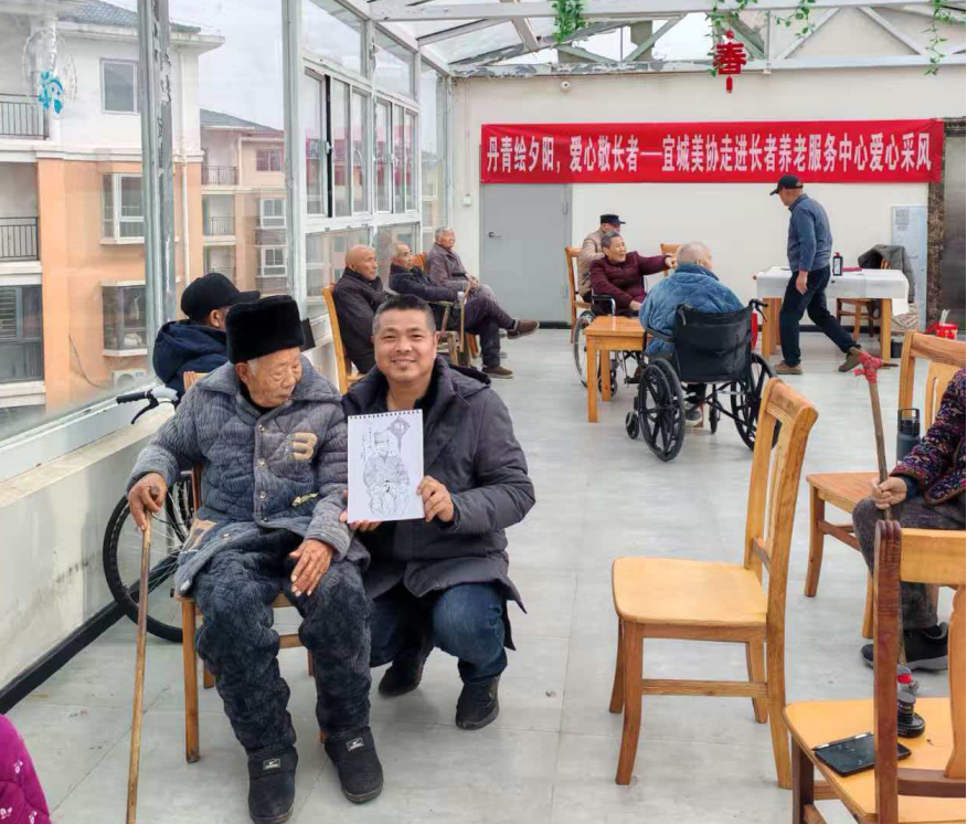 2月24日,新年伊始,宜城市美术家协会组织6名会员走进宜城市长者养老服务中心,开展“丹青绘夕阳、爱心敬长者”爱心采风志愿服务活动,以笔墨传情,为老人们送上一份特别的温暖。