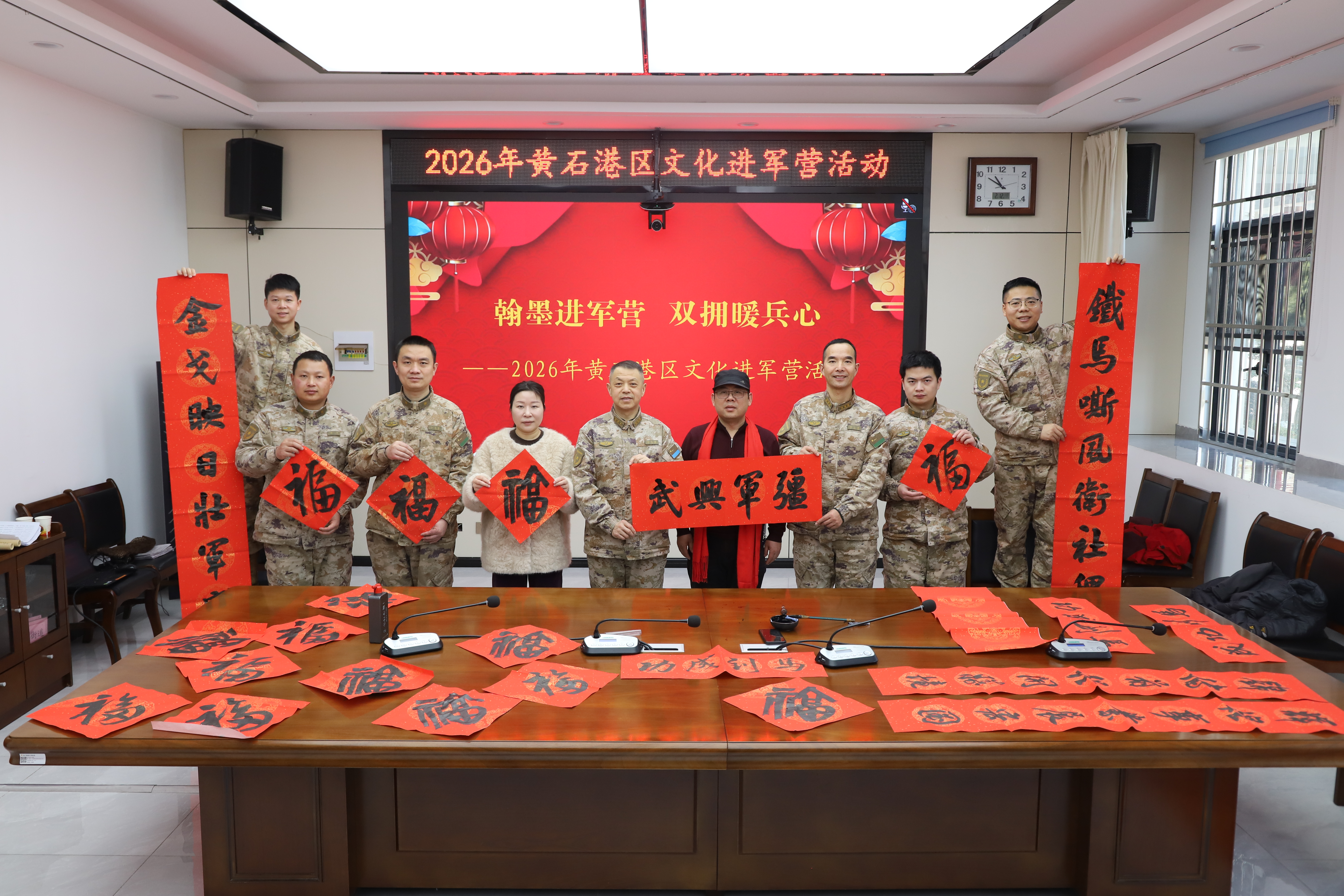 2月12日,文艺志愿者们走进黄石港区人武部,以笔为媒、以墨传情,共同书写满载新春祝福的“文化年货”。