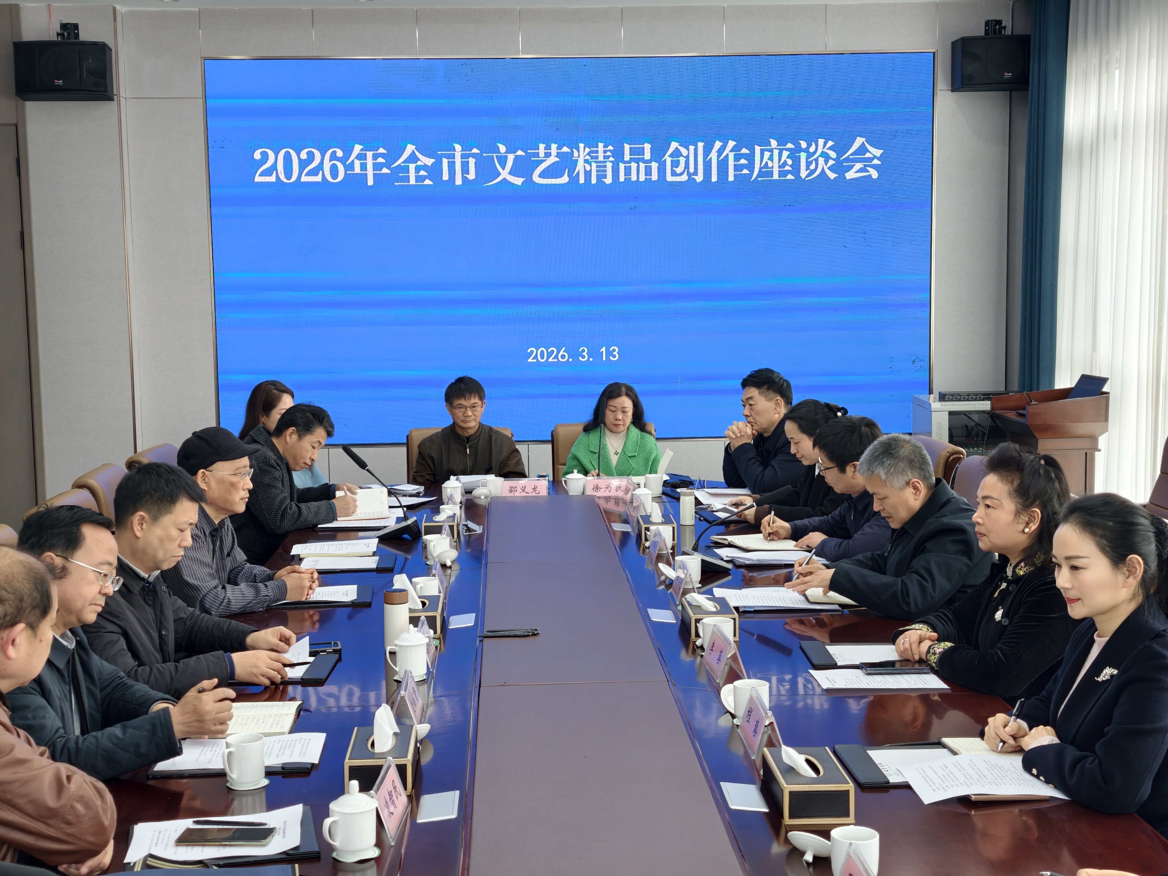 3月13日上午,2026年全市文艺精品创作座谈会在堰丰酒店召开。市文联党组书记、主席李占富出席会议并讲话。第四届武当文艺奖获奖代表结合创作实践分享心得体会,9个文艺家协会主要负责人介绍2026年重大主题创作计划。