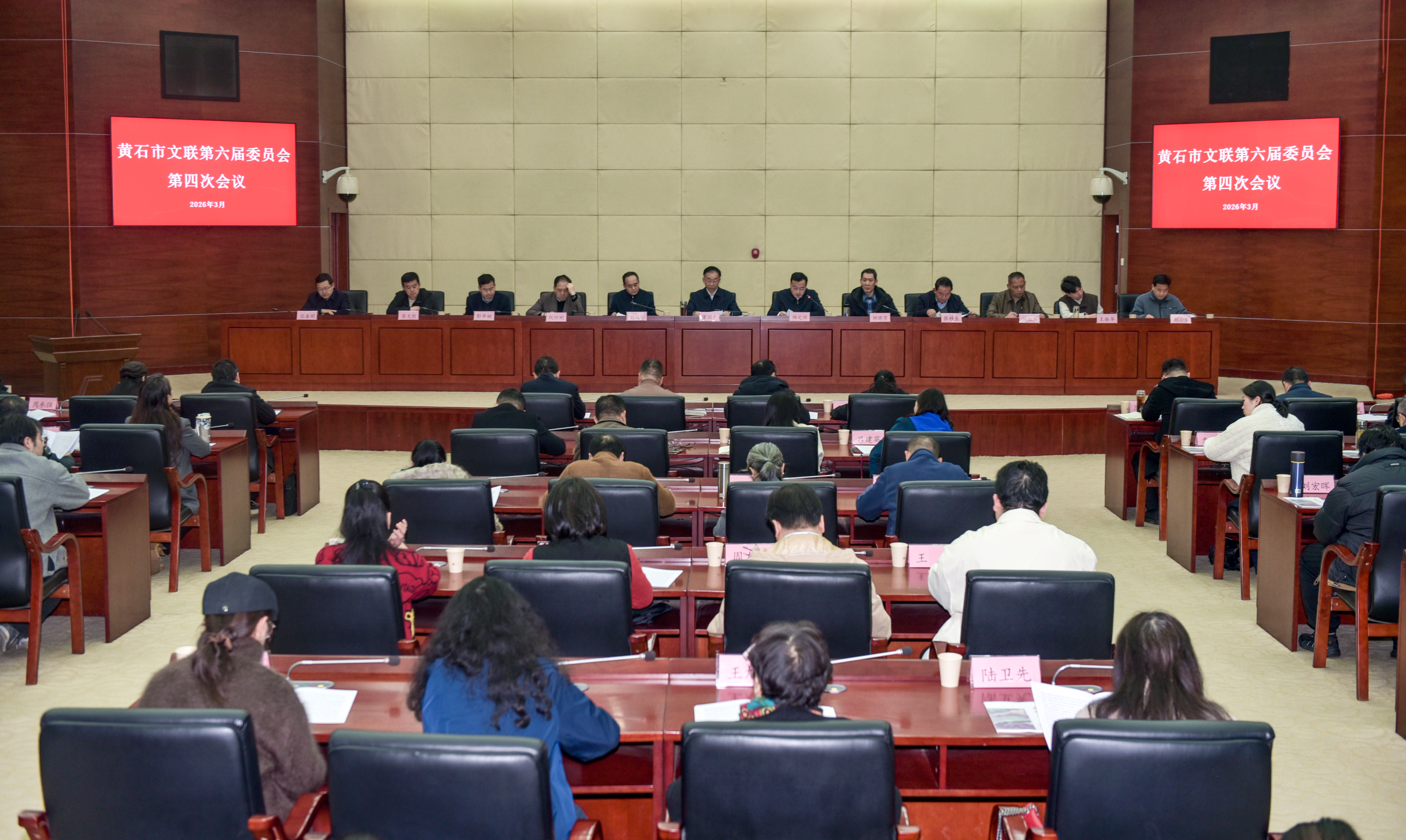 会议表决通过了《关于增补、替换黄石市文联第六届委员会部分委员和兼职副主席的决议》《黄石市文联六届四次全委会工作报告》和《黄石市文联2026年工作要点》。市文联六届主席团成员、六届委员会委员,县(市、区)文联、大冶特钢文联、大冶有色文协、市消防救援支队文联有关负责同志,市委宣传部文艺和文化产业科负责人,市文联机关全体人员参加会议。