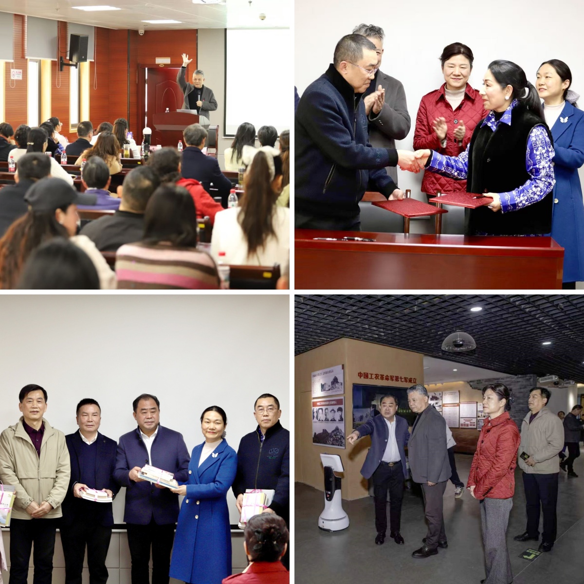 省朗协黄陂工作部与区档案馆签署了《文化共建备忘录》。双方就未来在“档案故事会”“红色诵读进校园”等一系列项目上深度合作、携手前行进行友好约定。区文联还向区档案馆赠送一批名家新作、藏书和字画。