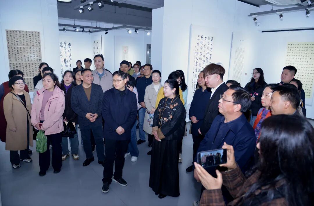 3月23日,由湖北省书法院主办、湖北省书法院楚简书法研究中心承办的“相期与来·楚简六人书法作品展”在湖北省国画院美术馆开展。来自全国各地的楚简书法爱好者相聚江城,共赏简牍墨韵,共话楚简传承。展览不设开幕式,开展当天,湖北省文联党组书记、常务副主席张士军,湖北省文联党组成员、副主席王永平,湖北省文联文学艺术院负责人虞旻子前往展厅观摩作品,并与参展书家、观众合影。