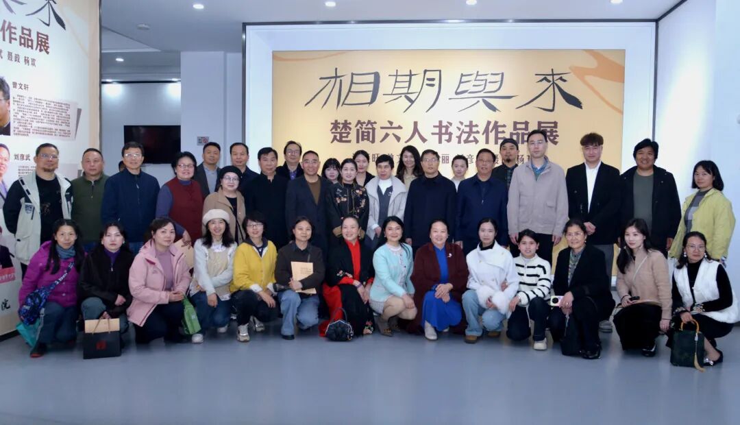 楚简承载荆楚文脉之魂,湖北省书法院立足地域根脉,湖北省书法院于2023年6月成立了楚简书法研究中心,并举办了首届楚简书法骨干高研班。来自全国各地的30位书友相聚江城,朝夕切磋,于笔墨间探源楚简法度。历经两年学习,学员们结下深厚情谊。此次展览由福建谢辉旺,湖南曾文轩,河南孟艳丽、聂政,湖北刘彦武、杨欢六位同学共同倡议,以“相期与来”为题举办联展,既是对研学之路的回望总结,亦是同窗情谊的珍重赓续,并以此感恩湖北省书法院楚简书法研究中心的悉心培养。