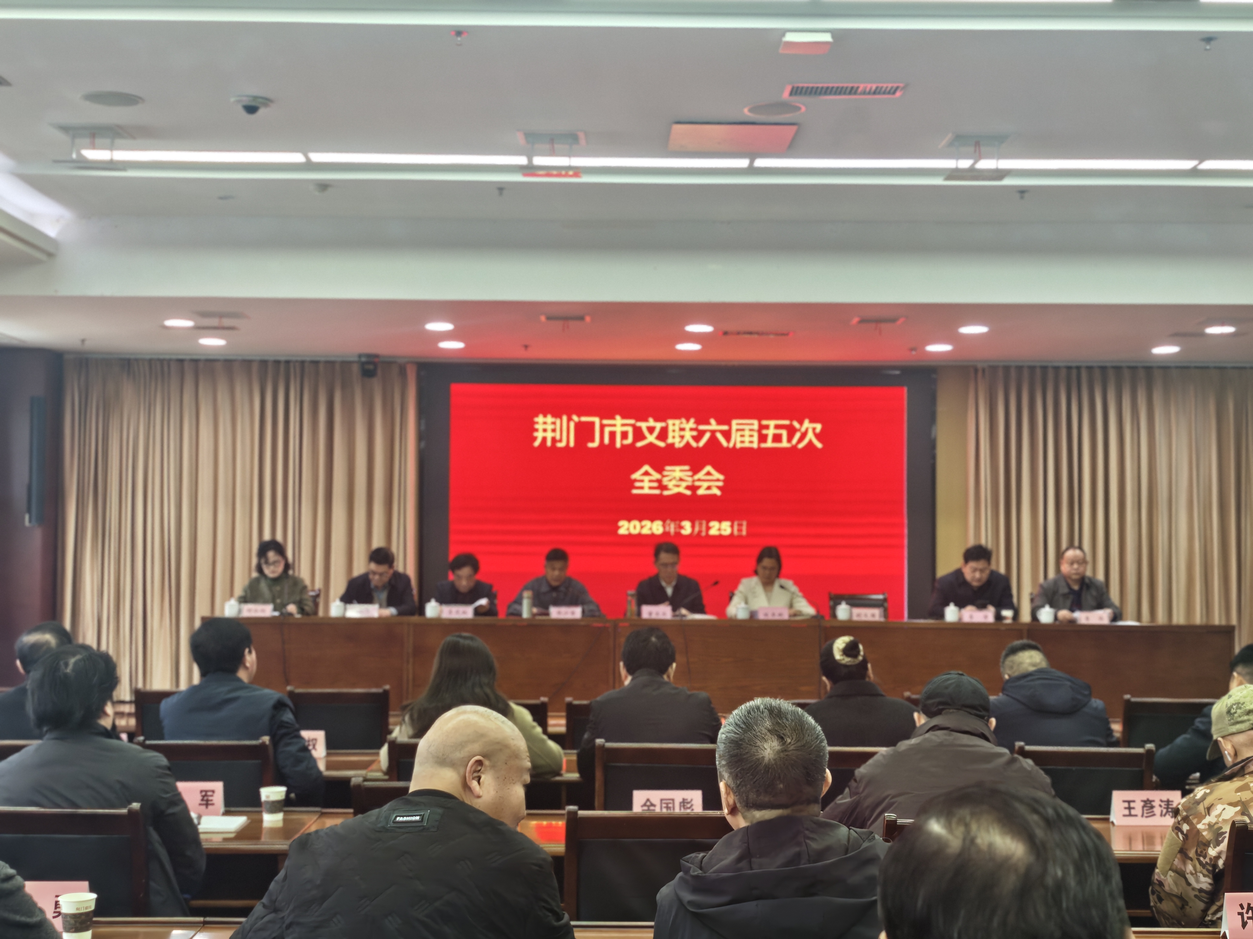 3月25日,荆门市文联六届五次全委会暨文联系统干部素质提升专题辅导会议在荆门剧院召开。本次会议邀请到湖北省文联文学艺术院负责人、湖北省摄影家协会副主席虞旻子作专题辅导,市委宣传部副部长董玉杰出席会议并讲话,市文联党组书记陈亚妮作工作报告,会议由市文联主席韩少君主持。市文联第六届主席团成员、全委会委员、文联全体干部职工近百人参加会议。