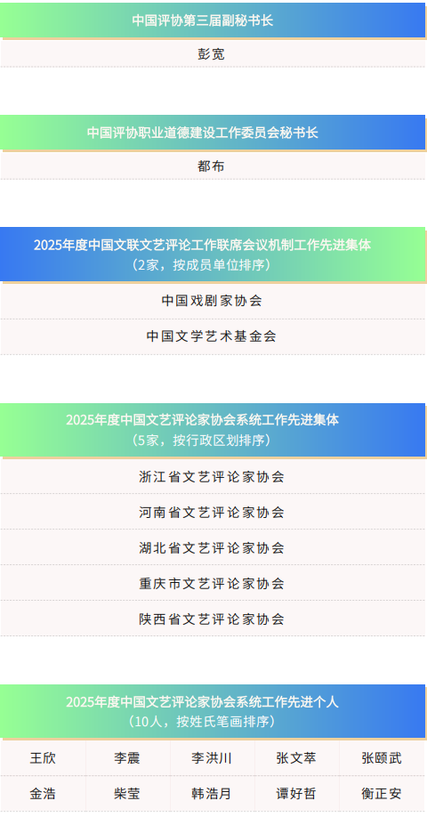 中国评协2026年度拟吸纳个人会员名单已即时在中国文艺评论网公示,公示期结束后将在中国文艺评论网和“中国文艺评论”公众号公布。