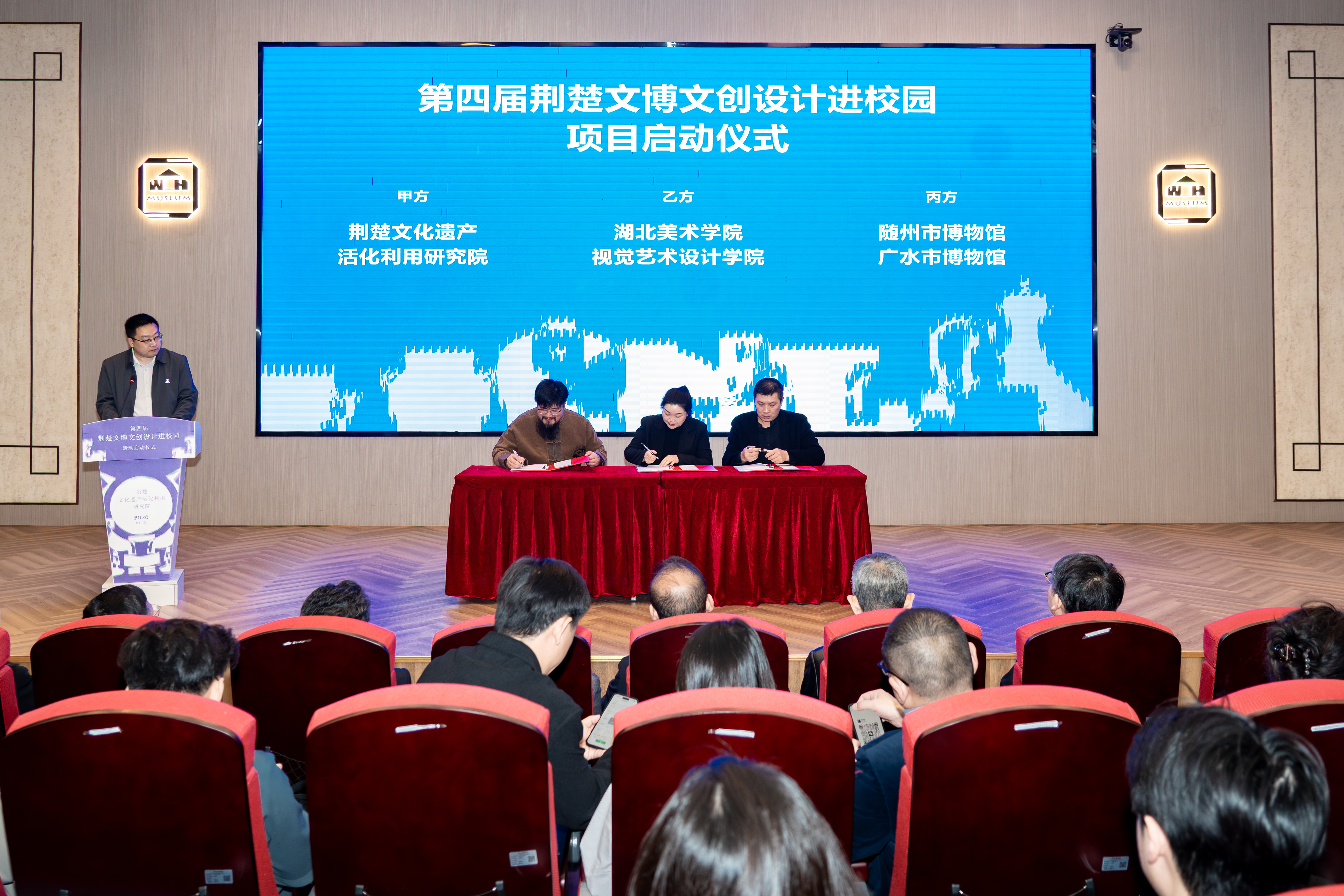 会上发布第四届“荆楚文博文创设计进校园”项目实施方案,由省文物局和湖北美术学院合作共建的荆楚文化遗产活化利用研究院牵头,以“一个区域的博物馆+一所高校”的配对,分别与参与项目的18家博物馆代表、8家高校代表签署项目合作协议,形成“区域协作”+“一馆一校一企”的新合作模式。标志着新一轮荆楚文博文创事业发展从探索实践走向提质增效与系统深化。