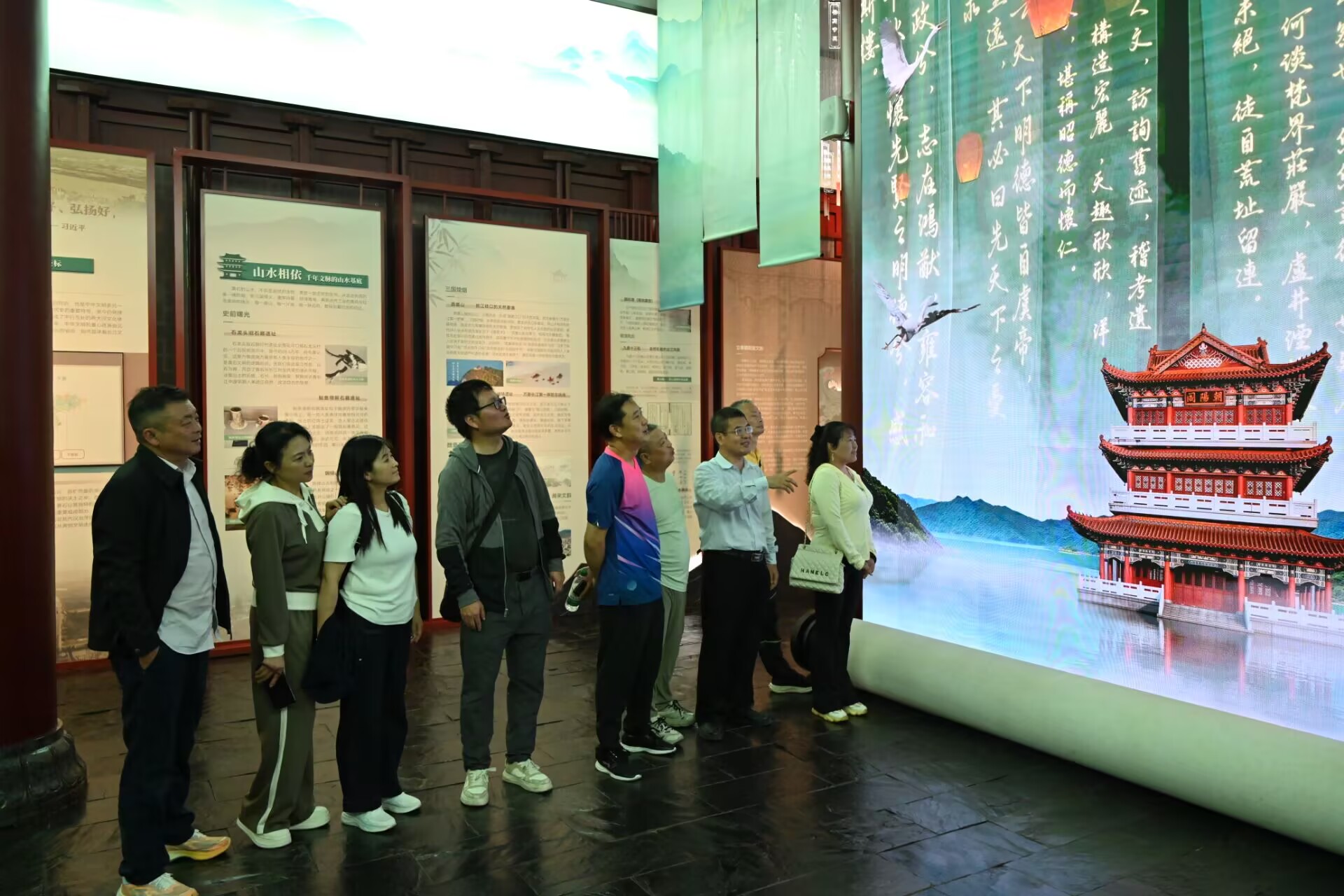 大家实地走访和调研了解放黄石渡江纪念雕像、外贸码头旧址、卸矿机码头遗址、醉吟窝、西塞山等长江文化胜迹,重点参观了修饰一新的“鄂东第一阁”朝阳阁,对其精彩纷呈的灯光装饰工程赞不绝口。朝阳阁雄居长江之滨,俯瞰黄石矶头,始建于唐末,距今已有千年历史,宛如一部立体的史书,承载着港区的人文历史精华篇章。新装修的朝阳阁内墙布展一新,气度不凡,展示了黄石的红色文化、长江文化、矿冶文化、港埠文化等文化精髓,体现了独特的工业文明、城市精神和文化标识,融思想性知识性观赏性于一身,令人耳目一新,过眼难忘,油然而生一股奋进动力。