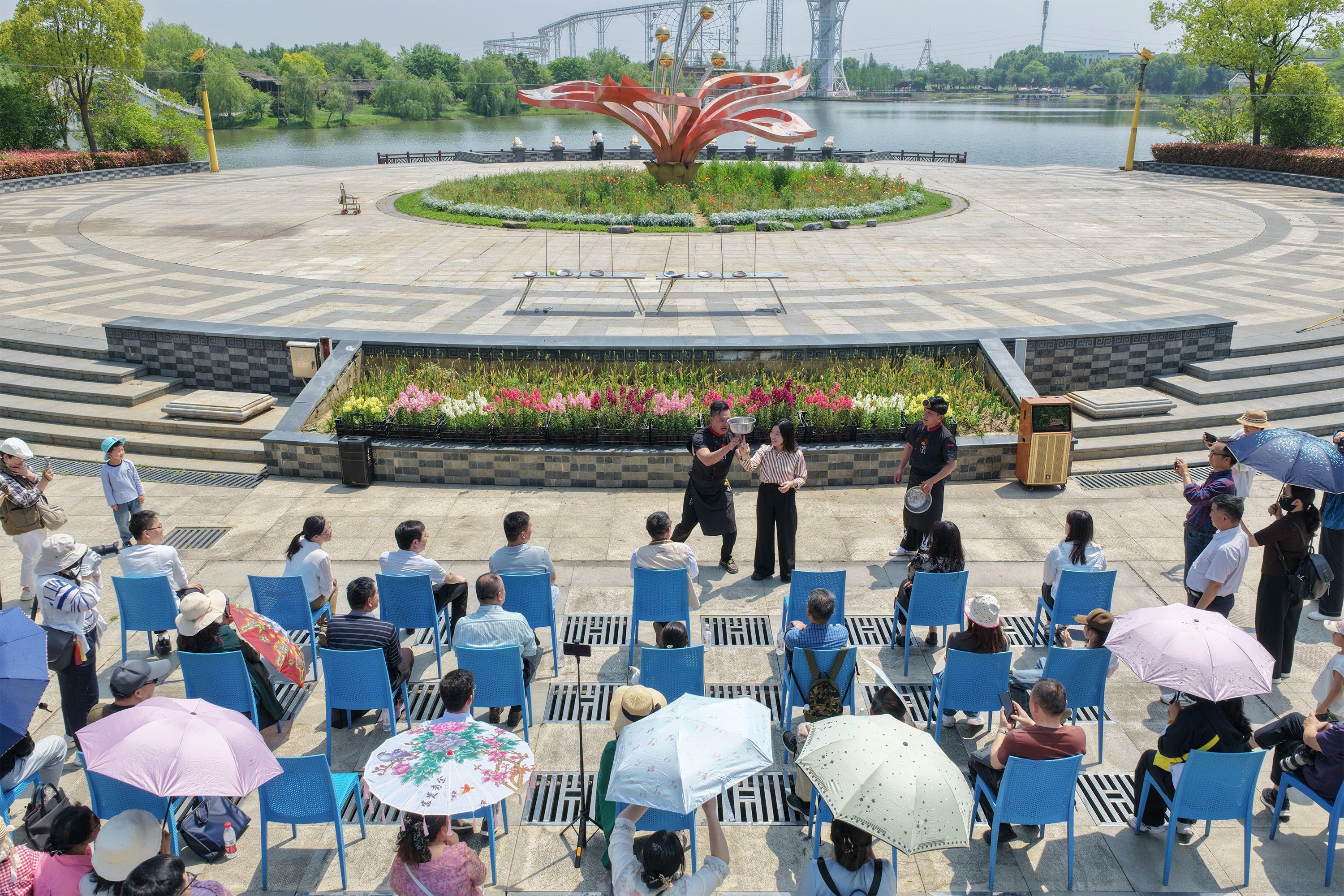回归本真形态,杂技在天地间生长。 上午11时,杂技专场演出在金卉庄园中心广场空地启幕。不搭建舞台,不设置主席台。《顶缸》《力与美》等杂技节目轮番上演,精妙的魔术表演与本土朗诵节目收尾。这种回归本真的呈现方式,打破了传统文艺演出“台上演台下看”的惯式思维,演者与观者融为一体,让艺术与生活在同一片土地上同频共振。