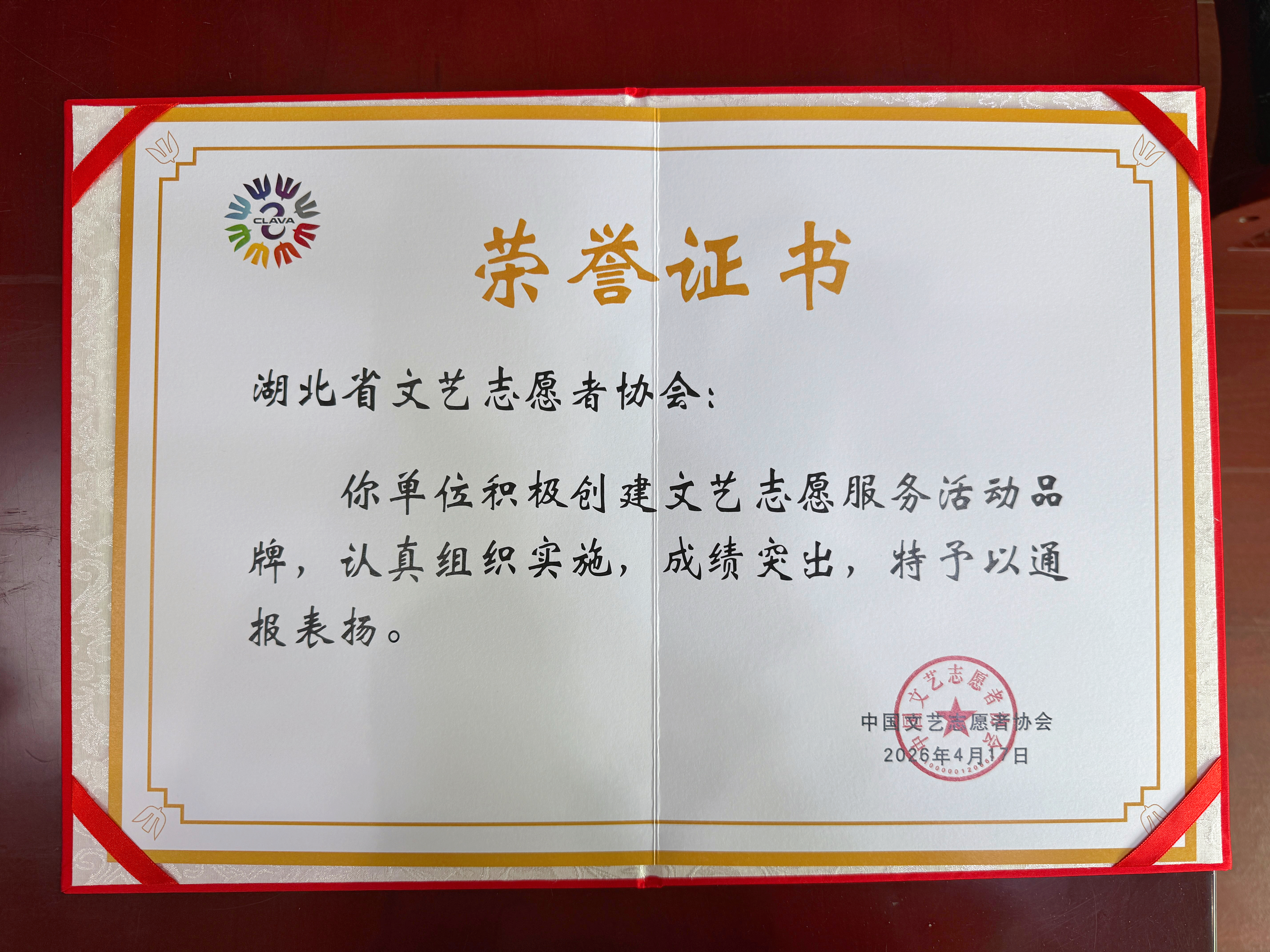 4月17日至18日,2026年中国文联文艺志愿服务工作会议暨中国文艺志愿者协会三届四次理事会在北京召开。理事会议听取并审议了工作报告、会员发展、理事更替、文艺志愿服务标识基本规范、协会会歌等事项,通报表扬了2025年度协会单位会员。 湖北省文艺志愿者协会积极创建文艺志愿服务品牌,成绩突出,被通报表扬。