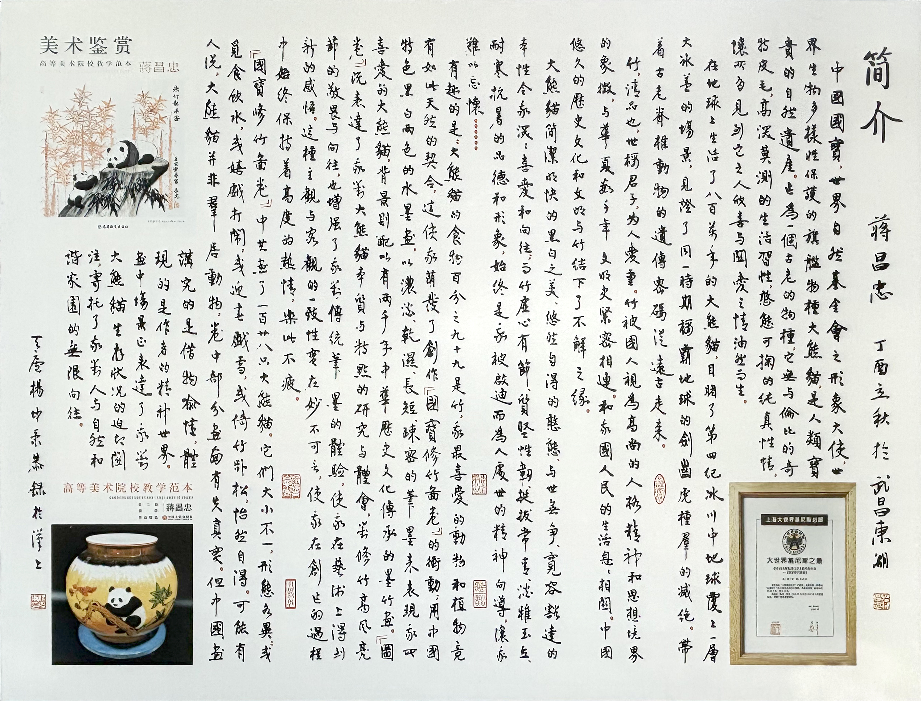 园区熊猫瓷板画